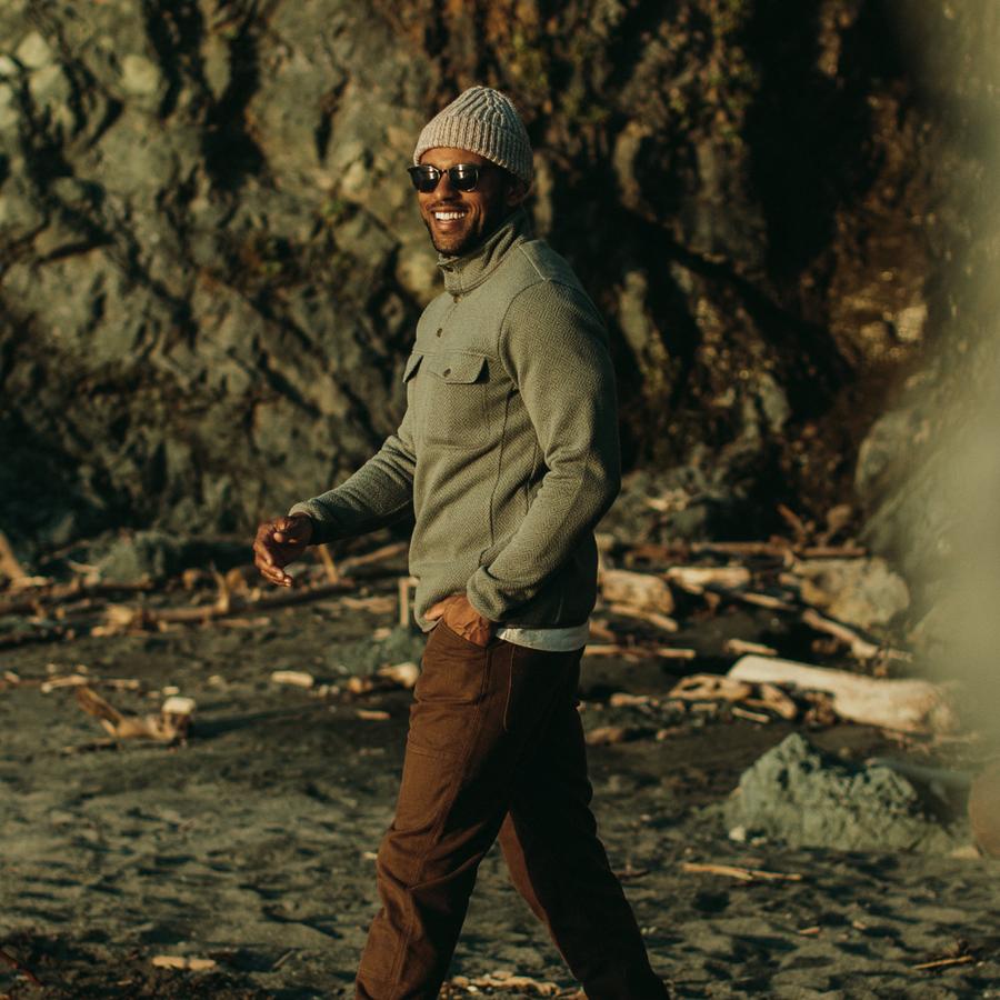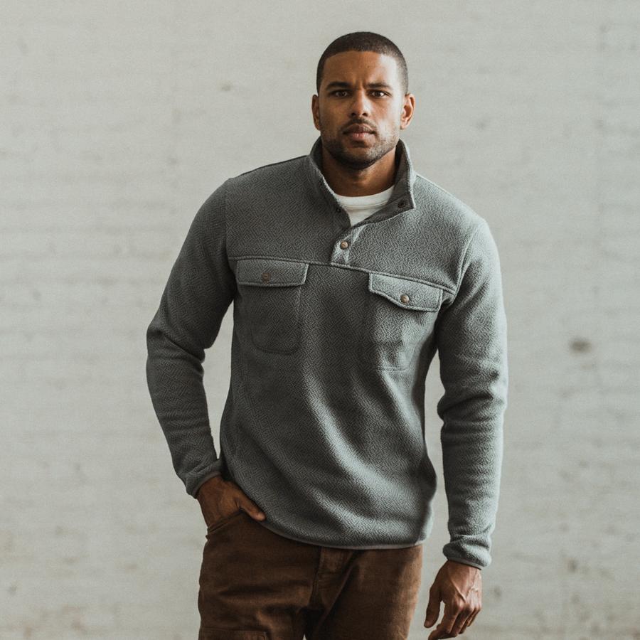 There is a classiness to all the apparel from Taylor Stitch but this is particularly evident in this stylish and effortlessly cool Taylor Stitch Pack Pullover in Slate Grid Fleece. Crafted from from 100% recycled polyester, which makes it slightly heavier than past iterations from Taylor Stitch (but still easy to compress and pack away for excursions), The Pack Pullover offers precisely the kind of versatility you want when you have an eventful—but undefined—day ahead of you.