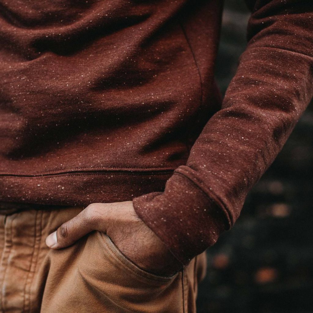 Each one of these excellent looking sweaters from Taylor Stitch is cut from a 50%-50% blend of organic cotton and recycled polyester with a loop back French terry. It is the perfect fall and winter weight and it is an easy piece to simply toss over a shirt and look great. The 50-50 blend of this sweater gives you all the strength of organic cotton, with the warmth and softness of a recycled poly so “The Crewneck” Sweater from Taylor Stitch really is the best of both worlds.
