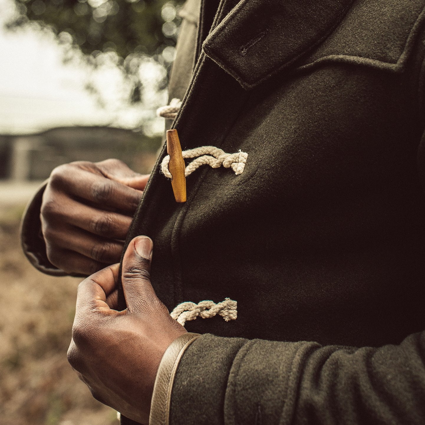 Despite its smooth texture and elegant and sophisticated appearance, the melton wool used in the Tomales Coat from Taylor Stitch is very hard-wearing and weather-resistant. The stylish 24-oz melton, sourced for the Tomales has been enhanced with a Thinsulate™ layer and a cotton/polyester lining for additional insulation, while leather accents reinforce the sleeves and welt pockets. As per tradition, natural wooden toggles run down the front of the jacket to offset the rich loden colour of the wool.