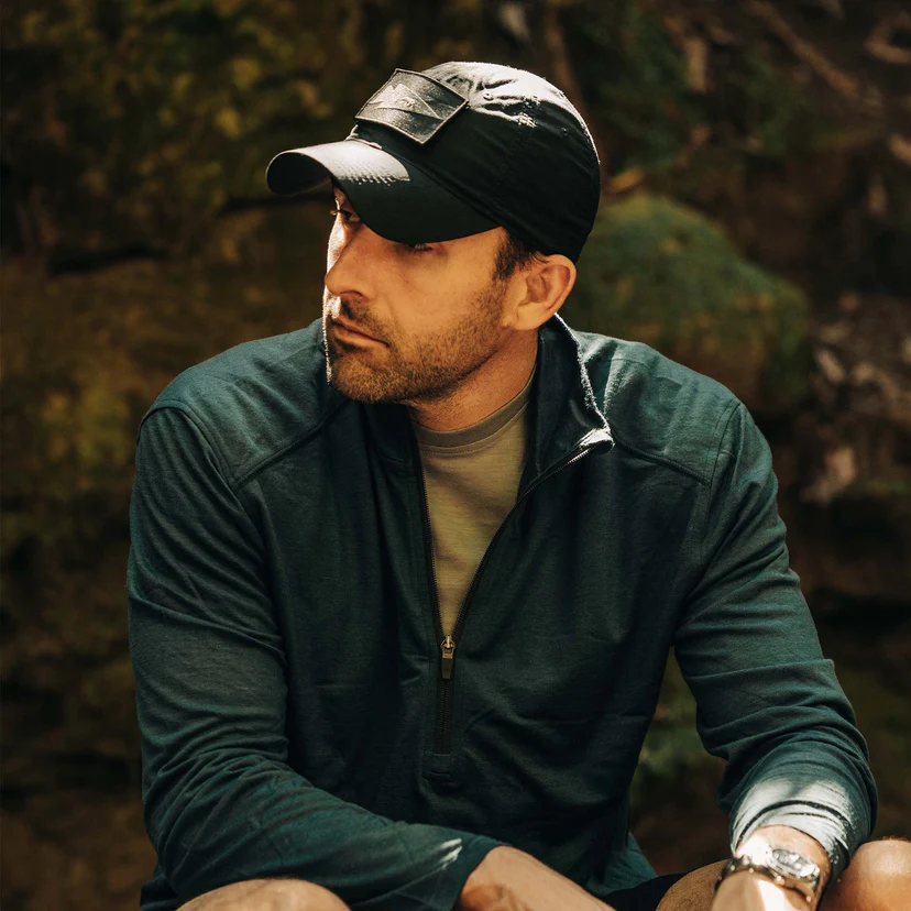 This soft and sturdy half-zip pullover was designed in collaboration with GORUCK. It is an ideal layer to have handy in your pack, whether you are going on a long hike or just running to the store. The half-zip is breathable and moisture-wicking, and it has a classic, easy-wearing silhouette. It is finished in a handsome Forest colourway that will wear in gracefully with every outing.
