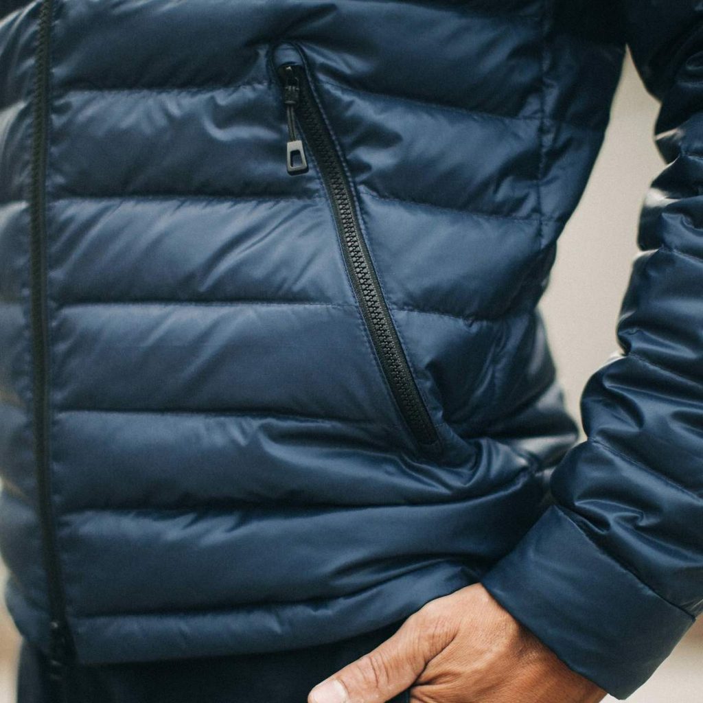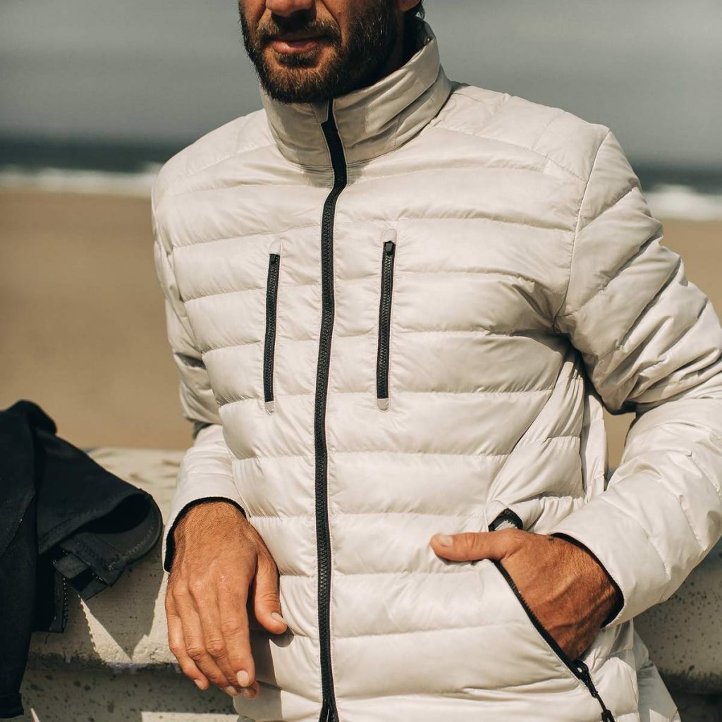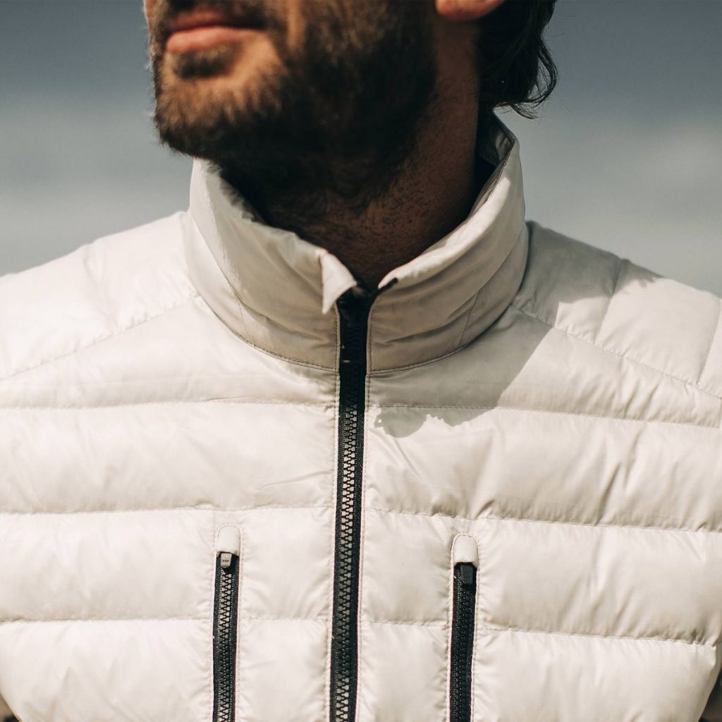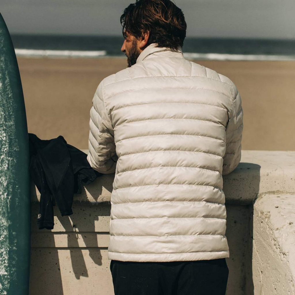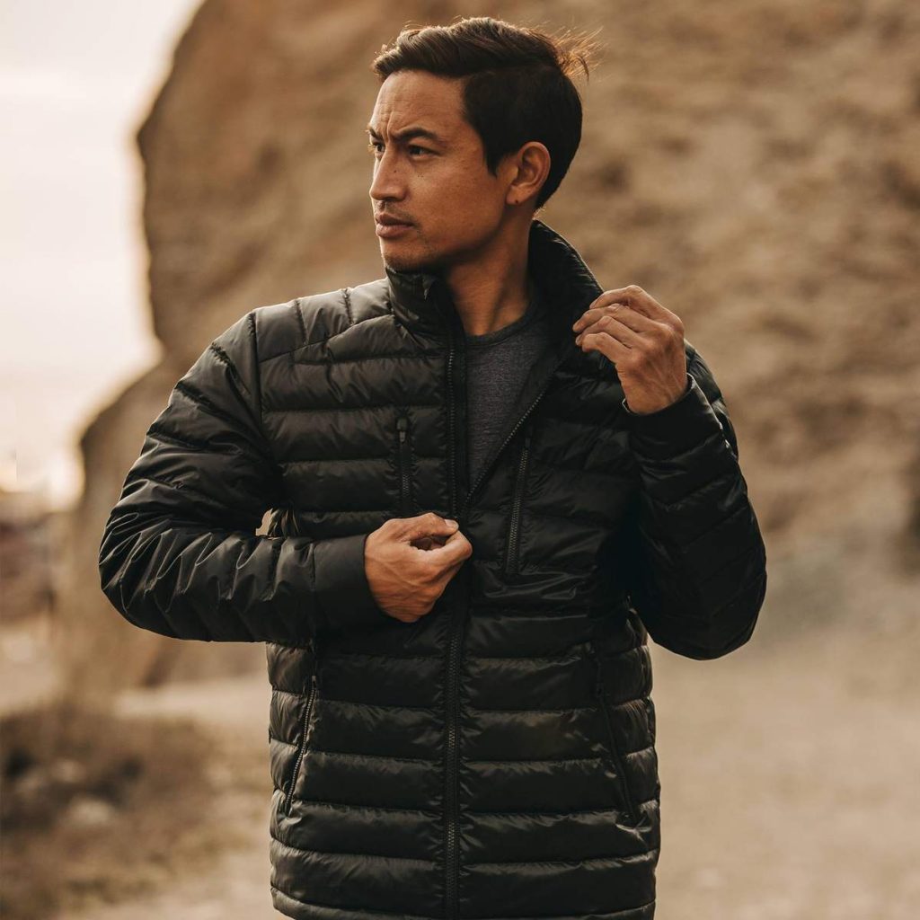 The Taylor Stitch x Mission Workshop Farallon Jacket ($198) boasts a nylon shell that has been treated with dirt and water-repellent ecorepel® and has earned the Schoeller bluesign® mark of approval which is an indicator of its compliance with very strict environmental standards. A soft brushed tricot lines the cuffs, collar, and pocket bags, while 100% recycled down insulation are responsible for the near-weightless warmth.