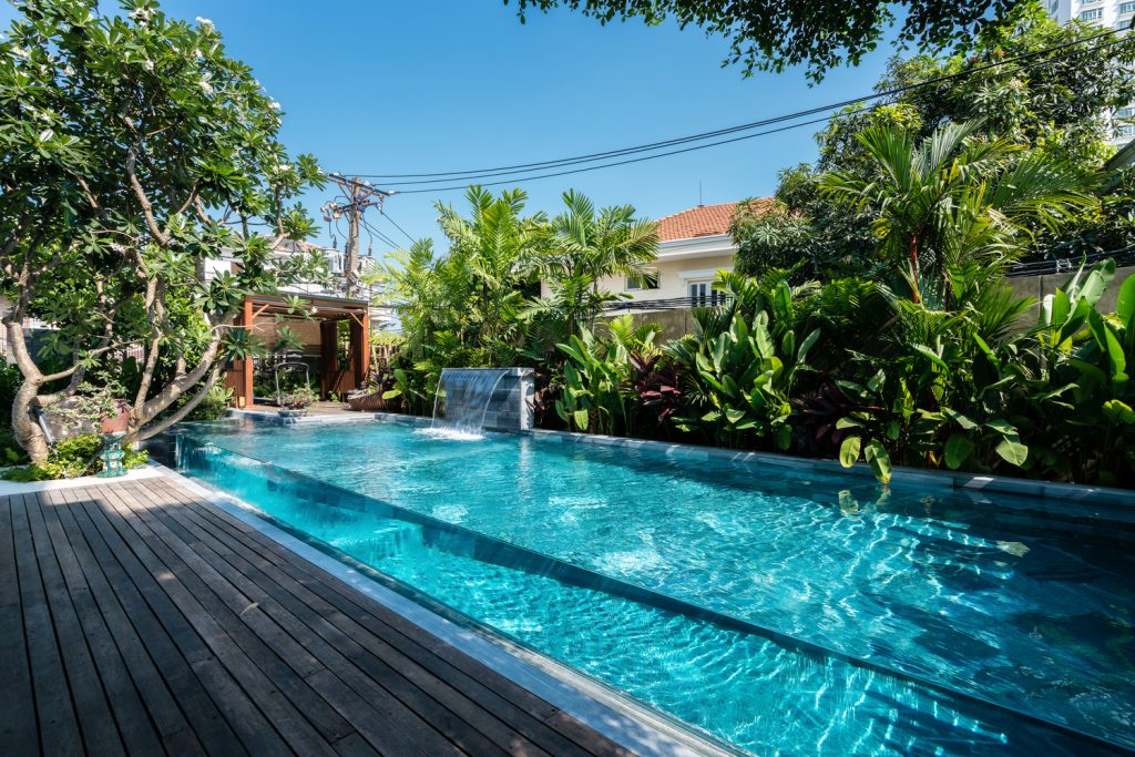 The outside of the Terraced Field House makes the most of the tropical climate of Vietnam with a sensational looking outdoor pool and koi pond. It is surrounded with verdant greenery and the back garden of the home is a world away from the hustle and bustle that is going on around it.