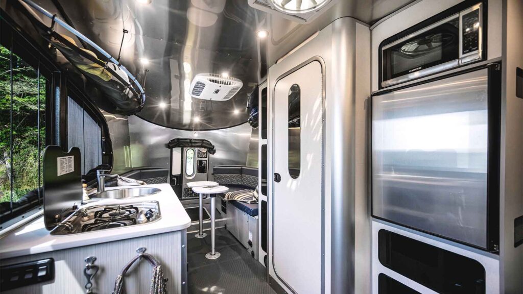 Unlike other Airstream models, the Basecamp boasts a uniquely aggressive rear departure angle, allowing you to tackle steep trails and rugged terrain without the dreaded scrape or drag. This, paired with a 3-inch lift kit and all-terrain tires, gives it a level of ground clearance that’s simply exceptional in its class. It’s not just built for adventure; it’s built to finish it strong, wherever the trail ends.