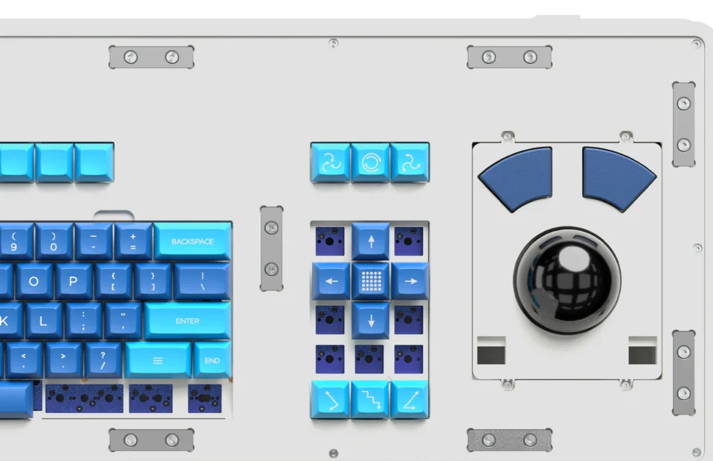 Snap on the “Innie Layout,” a trapezoidal design that, in a delightfully subversive nod to its inspiration, forgoes the Escape, Option, and Control keys. For those deeply entrenched in the delicate act of refining scary numbers, a fully functional 50mm trackball on the right side offers precision navigation, ensuring you locate those elusive digits faster and more accurately than ever before. This integrated trackball comes complete with two CNC-machined custom keycaps paired with MX switches, transforming rolling into a natural click.