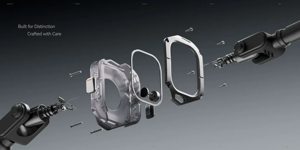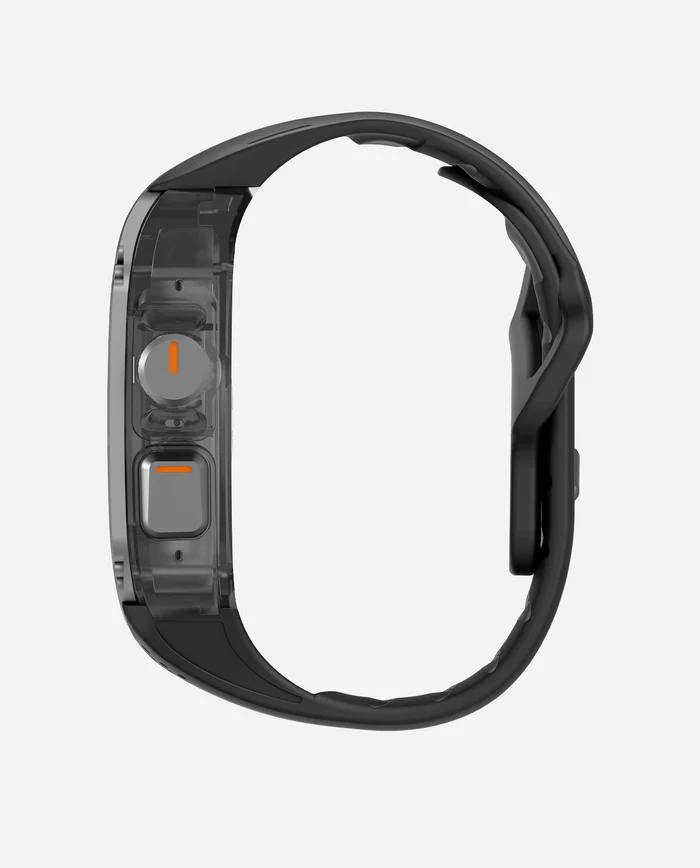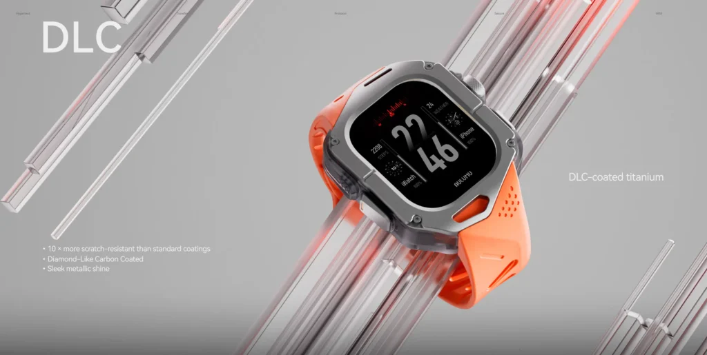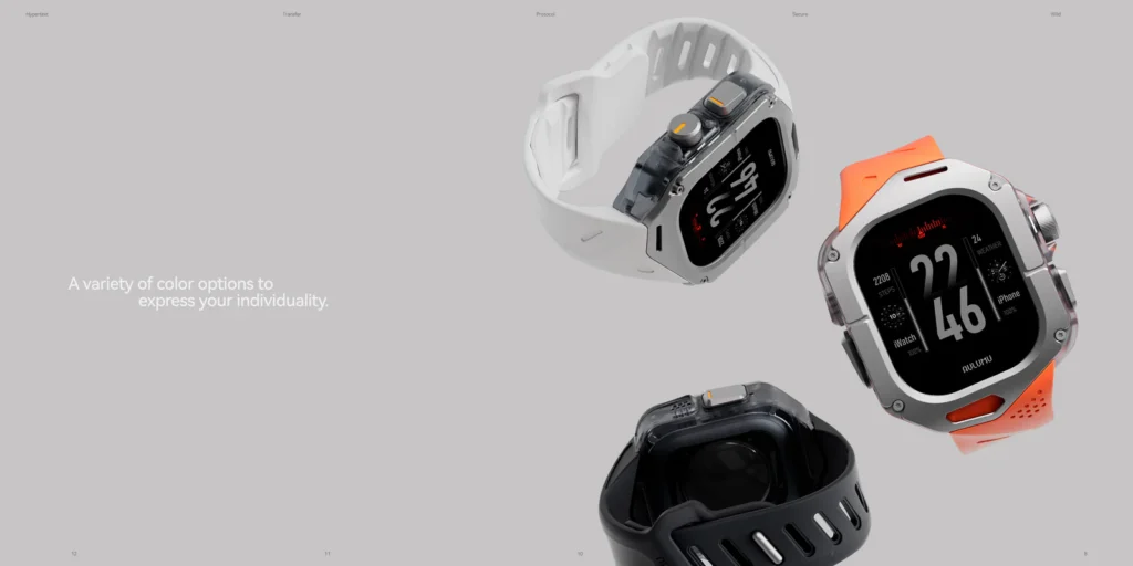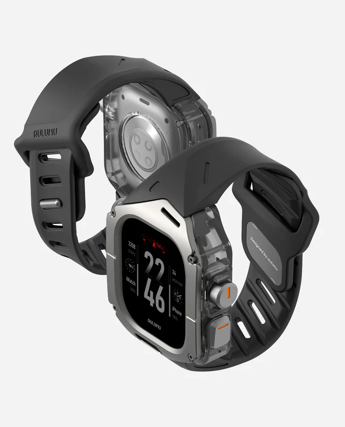 The first thing that grabs your attention is the A01’s aerospace-grade titanium cover. This isn’t just a fancy name; it’s a promise of exceptional lightness and durability. The titanium is tough yet surprisingly feather-light, ensuring that the 62g case doesn’t turn your Apple Watch Ultra into an anchor on your wrist. Paired with the watch, the total weight is a very manageable 123g, making it comfortable enough for all-day wear.