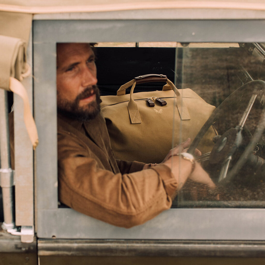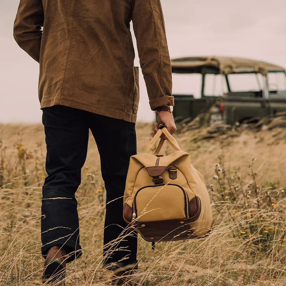 Carrying comfort is paramount, with British dyed and woven military-grade cotton webbing used for the handles and the detachable shoulder strap, which features solid brass clasps. Inside, a 100% British cotton lining adds a further layer of quality. Even the zips are premium YKK golden brass, ensuring smooth and reliable operation, while solid brass protector studs on the base safeguard your investment.