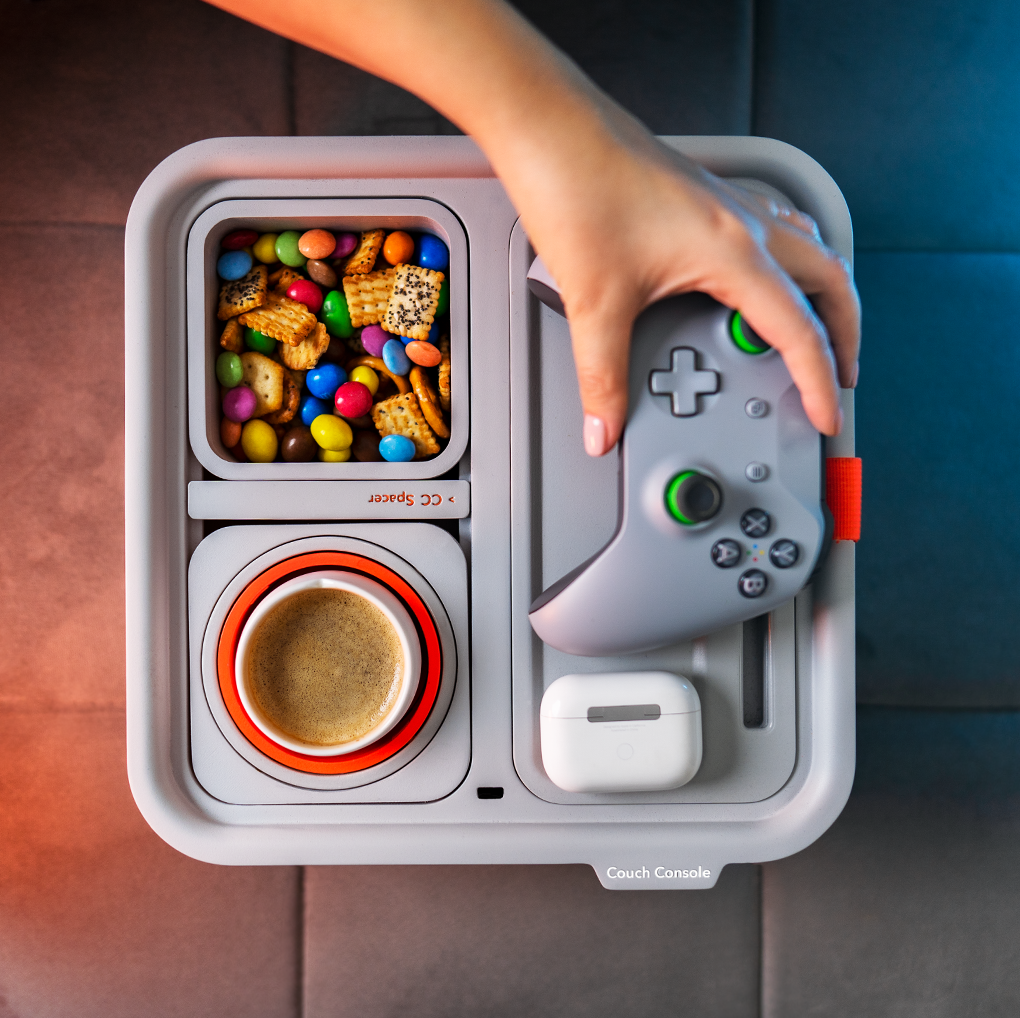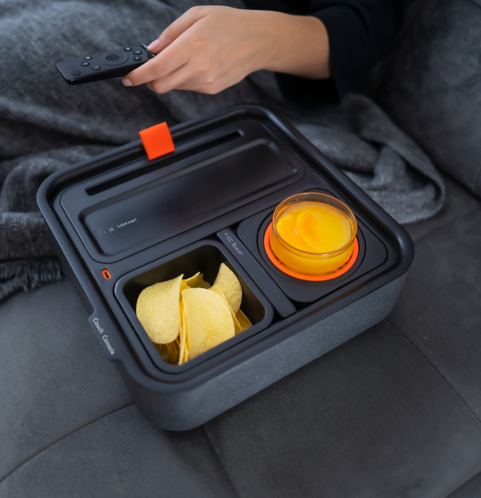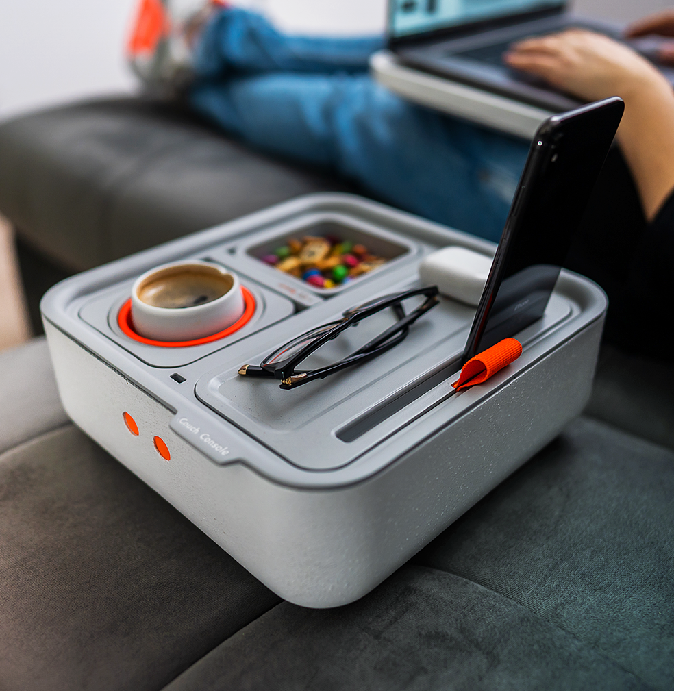 Each Couch Console comes with four modules as standard – the cup holder, snack cup, organiser and the spacer – but you can add extra modules to your order after your pledge on the Kickstarter campaign to make sure the design works for you and how you choose to operate whilst working from the sofa. With The Couch Console, cables, batteries, and even snacks don’t have to stay scattered anymore as they’ve incorporated a generous storage area in the design where you can store all the essentials you need close by.