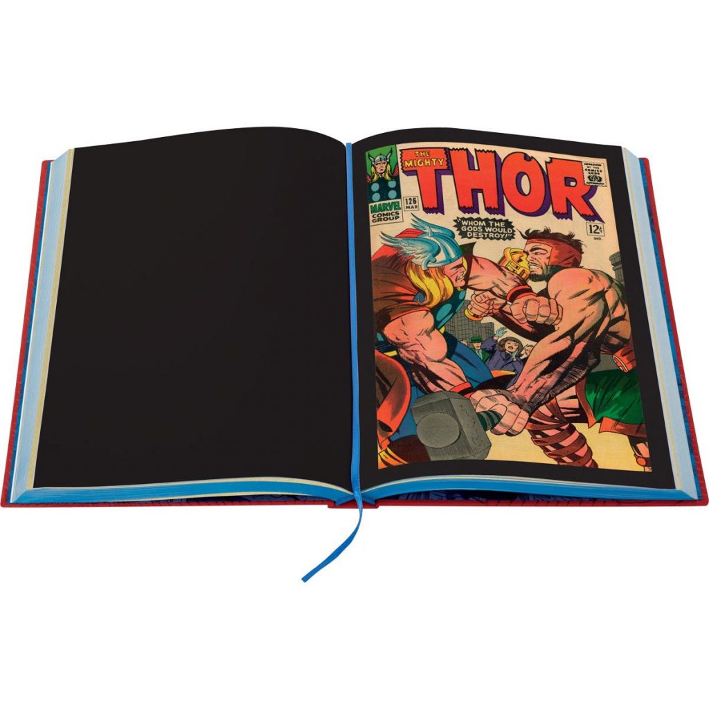 This mesmerising collector’s edition has been curated by Stan Lee’s editorial successor, Roy Thomas. (Two of Thomas’s earliest co-creations, the Vision and Ultron, both appear here in a story from The Avengers #57). The stories have been selected and reproduced with the utmost care. So as to obtain actual copies of the source comics, The Folio Society worked closely with both Marvel archivists and pillars of the comic collector community in an effort to bring you as close to the original source material as possible.