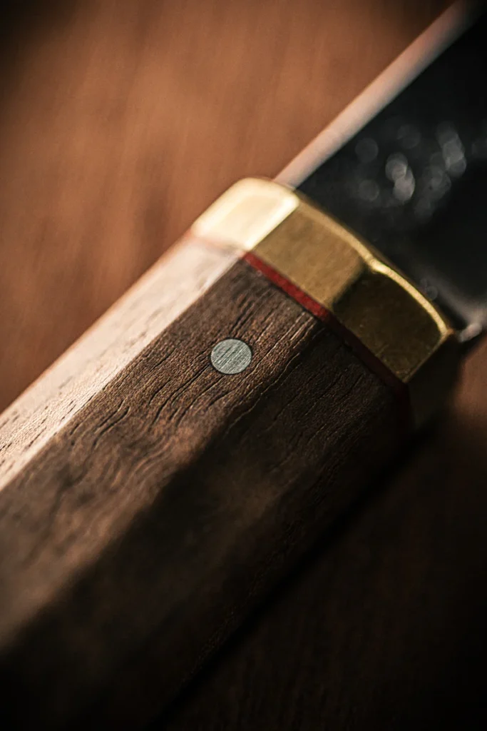 Beyond the magnificent blade, the execution of the handle and fittings showcases a meticulous attention to detail. The knife is assembled component by component, each piece crafted and fitted by hand.