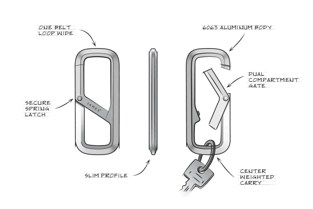 At a price point of $49, the Madison isn’t just a hunk of metal; it’s a beautifully engineered piece of functional art. Machined from billet 6063-T5 aluminium, this carabiner boasts an impressive strength-to-weight ratio, ensuring it can handle the rigours of daily life without weighing you down. But its true genius lies in its dual-compartment design, a hallmark of The James Brand’s carabiner architecture.