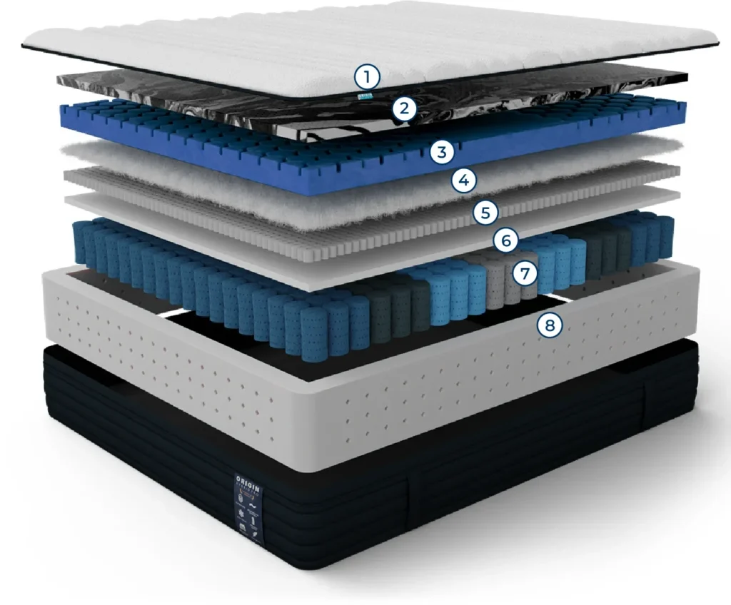 But the real engine room of this mattress is the spring system. ORIGIN didn’t just throw in a few pocket coils. They packed in over 5,700+ TitaniumCoil microsprings. This isn’t just for show; this dense, hyper-responsive grid creates two critical benefits.