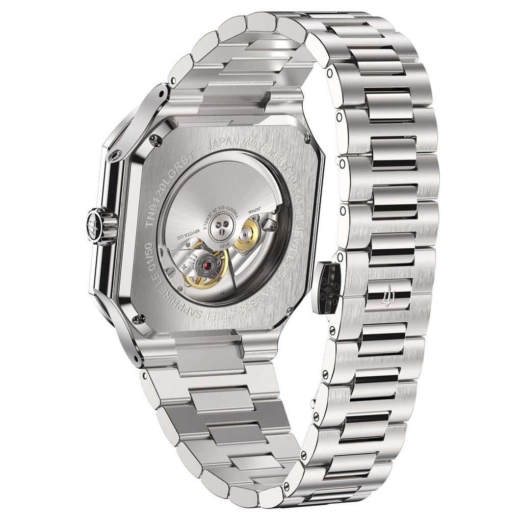 Built from premium 316L stainless steel, the case boasts highly polished sides contrasting with a brushed stainless bezel. This dual finish is mirrored in the bracelet, which features secure screw links and highly polished centre links that add a refined, distinctly luxurious feel to the wrist presence.