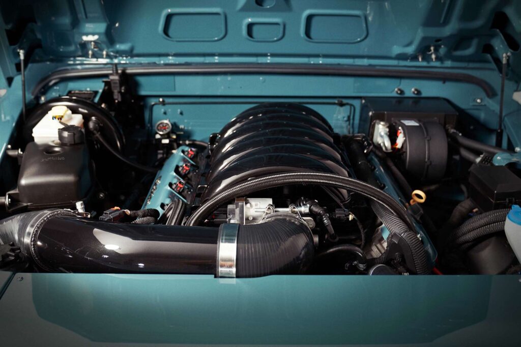 The bodywork is perfected, leaving flawless panels and bumpers free of the rivets, seams, and holes of the original. Beneath this slick, reimagined skin lies the heart of a beast: an immense 6.2-litre V8 engine, transforming the classic workhorse into a thoroughbred performance machine.