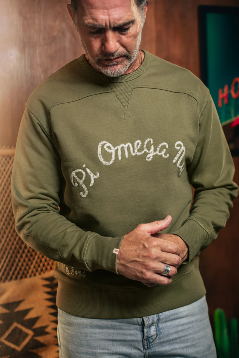 Inspired by those old college sweats that held their shape and softened beautifully with age, the Pi Omega Sweatshirt is a true piece of timeless quality. It’s the kind of wardrobe staple that will become a trusted companion, a repository of stories, and an enduring symbol of authentic, no-nonsense style for years to come.