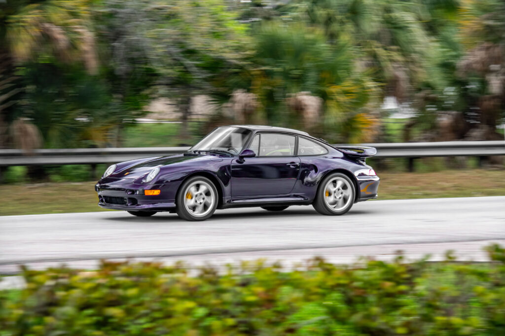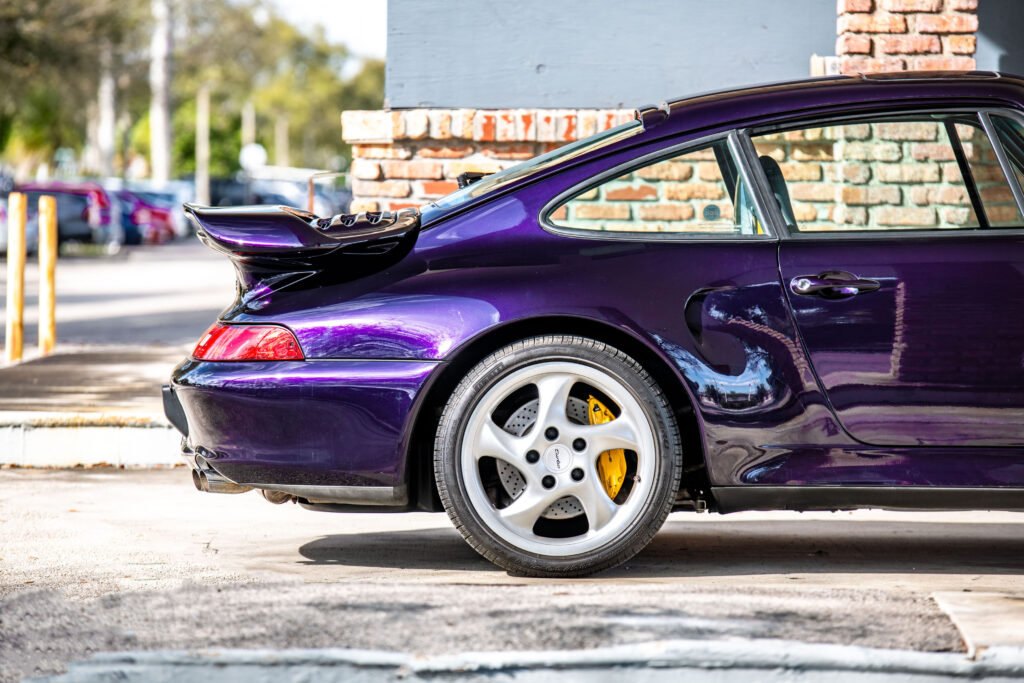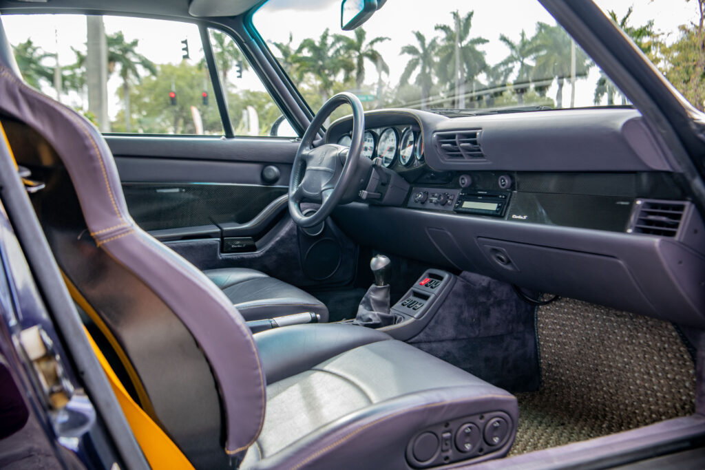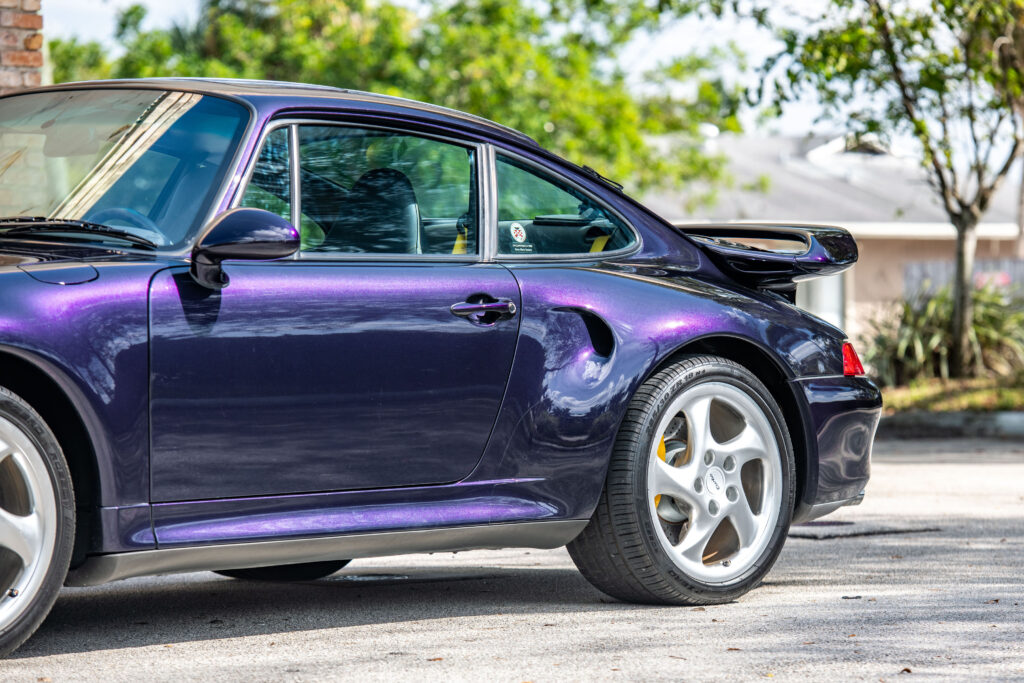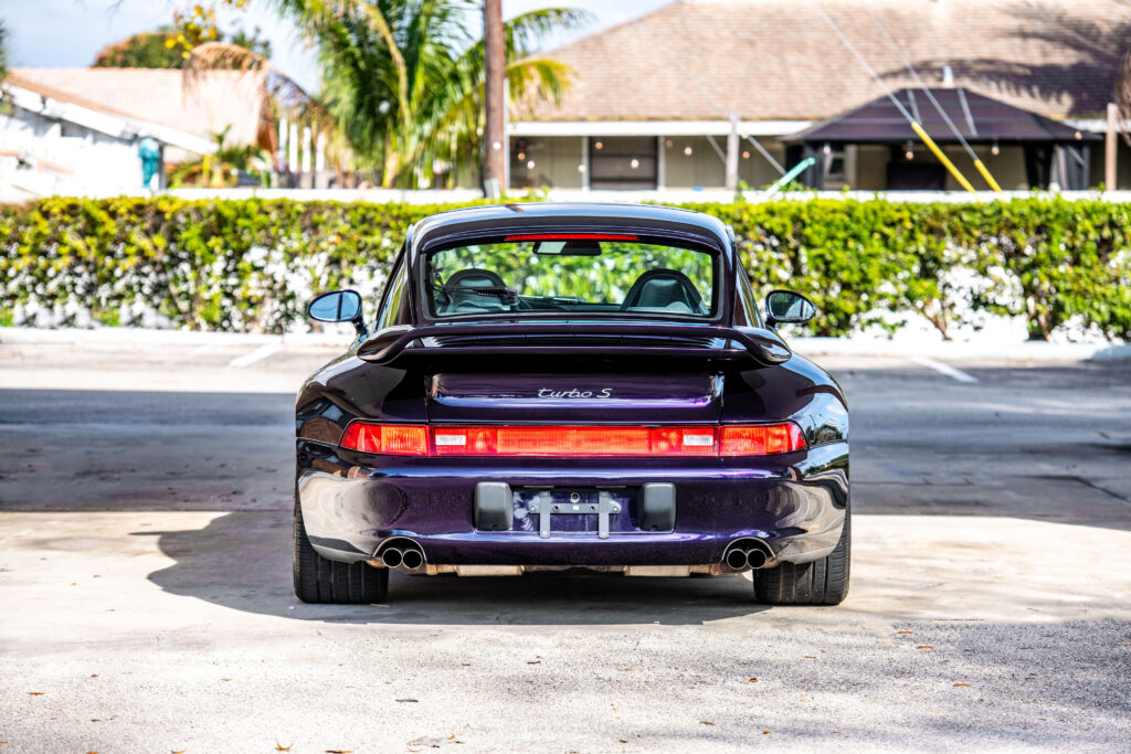 This particular 993-generation Turbo S distinguishes itself immediately with its breathtaking Viola Metallic finish. One of just three examples destined for the US market to be adorned in this special-order hue, its visual impact is undeniable. Delivered new to the legendary Brumos Porsche dealership, a name synonymous with Porsche racing heritage, this car’s pedigree is as impeccable as its presentation. With fewer than 26,000 miles on the odometer at the time of cataloguing, its condition speaks volumes about the cherished existence it has enjoyed.
