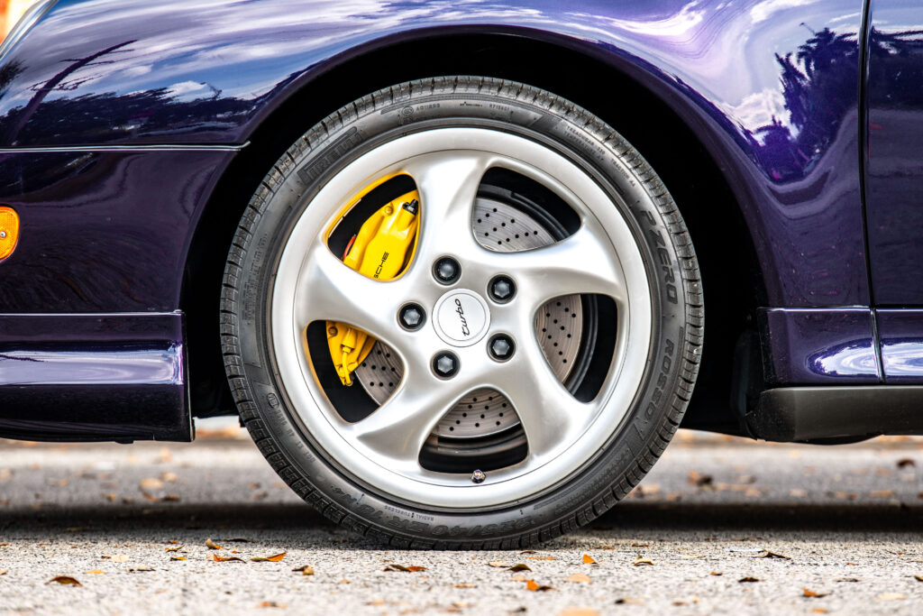 Beneath the surface, this Turbo S represents the zenith of air-cooled 911 technology. Its 3.6-liter flat-six engine, a masterpiece of engineering, benefits from a Bosch Motronic system recalibrated to unleash a potent 424 horsepower. Drawing inspiration from the iconic 959, all-wheel drive ensures tenacious grip, while cross-drilled, ventilated disc brakes, cooled by discreet air ducts, provide formidable stopping power. The wide-body design and aero kit aren’t merely for show; they are functional enhancements that complement the car’s blistering performance figures: 0-60 mph in 4.2 seconds and a top speed brushing 184 mph.
