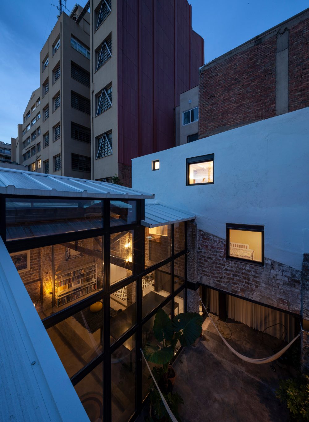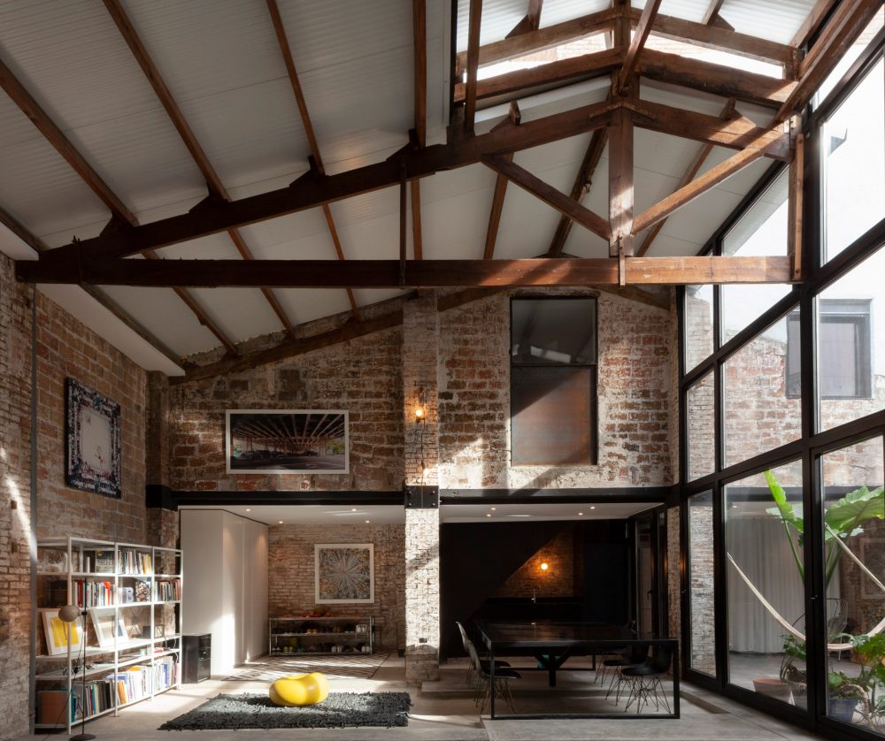 Thoroughly contemporary on the inside, The Theatre House from Cadaval & Solà-Morales aims to capitalise on the constructive values of the old theatre, whilst exposing its tectonic essences and exploit the amplitude that gives a lofty height to its large diaphanous central living space. The architects have managed to keep the building’s time-worn brick walls and timber ceiling beams and they have transformed the front half of the ground floor into two individual work studios for its current occupants.