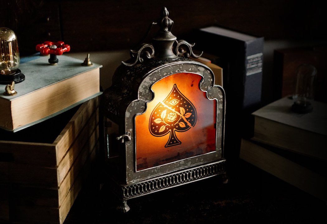 Theory 11 are the largest producer of luxury, designer playing cards in the world and, to date, they have designed and produced 78 unique playing card designs. Their overriding goal in playing card design is a straightforward one – namely, to push the envelope and create the most breathtaking, innovative, sophisticated designs any where out there. This Theory 11 Antique Spade Lantern is an extension of their design endeavours and for anyone with a love of retro interior design aesthetics, this will be right up your street.