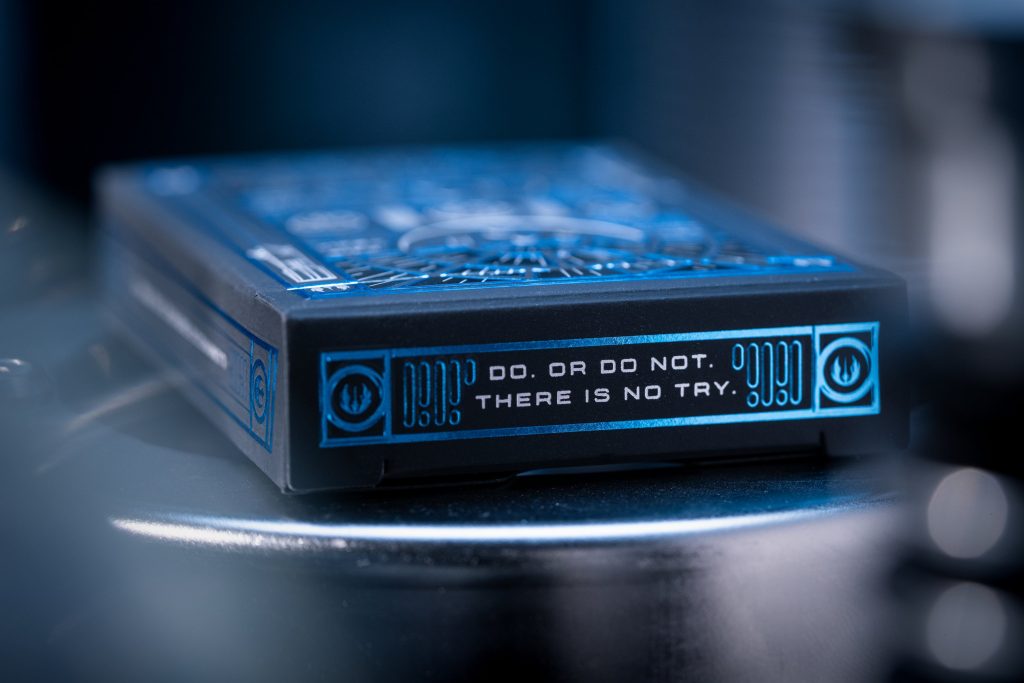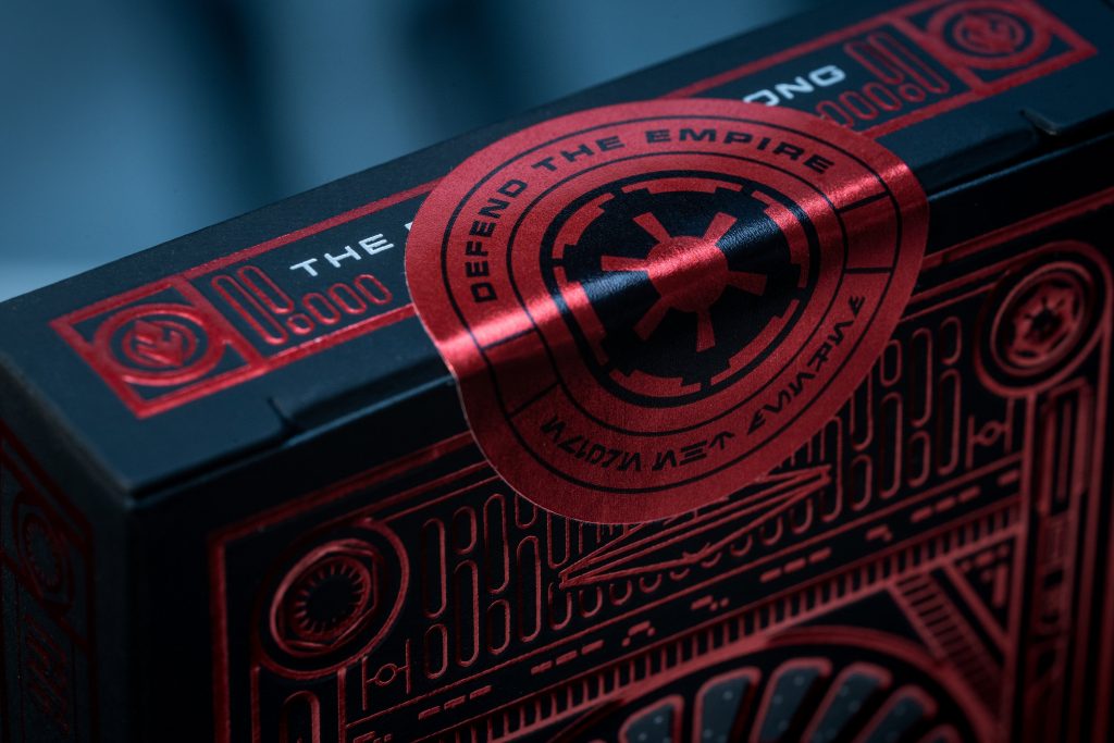 The Light Side Set of Playing Cards from Theory 11 lets you join Jedi Knights, climb aboard the Millennium Falcon, and become a Rebel or Resistance hero so this is the deck for you if you consider yourself the heroes of the movie. The Light Side deck boasts Luke Skywalker’s lightsaber, R2-D2, and fighters from the Rebel fleet to name but a few and the eye-catching nature of the cards is second to none. The outer packaging is stunning, with a bold, vibrant blue foil – mixed with clear, reflective foil that creates the illusion of the Millennium Falcon cockpit window.