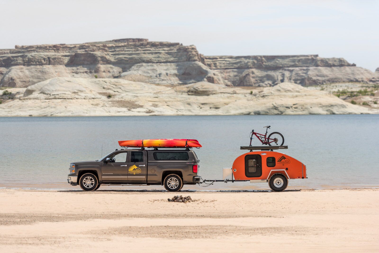 Timberleaf Camping Trailers really are a cut above in the road-tripping and camping stakes and they can be purchased in a variety of different colors with stead-fast enamel-baked aluminum siding alongside a clear anodized top so that your trailer can be really tailored to your own personal design tastes. In terms of weight, the trailers are pretty lightweight and tip the scales at just 1500 pounds dry, with a 140 pound tongue weight with optional accessories, meaning that this featherweight trailer will tow effortlessly well.