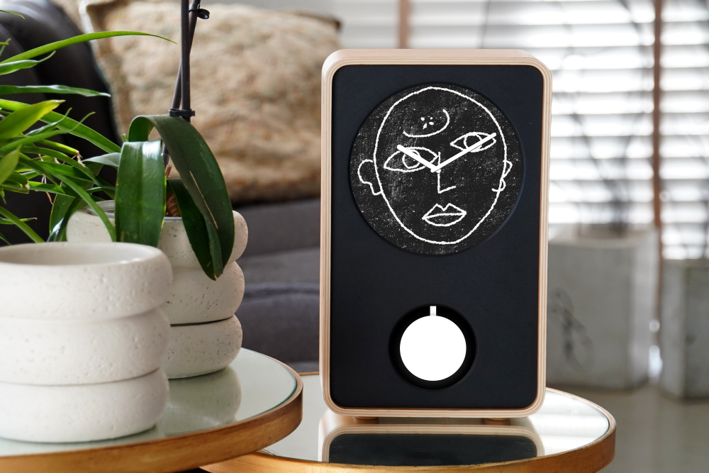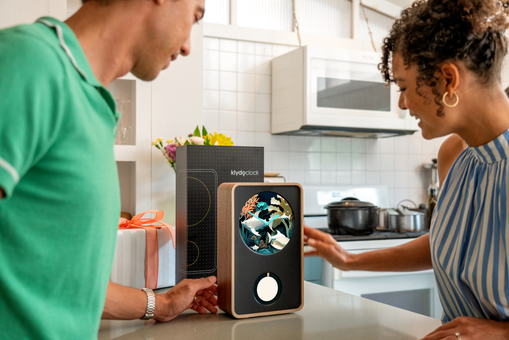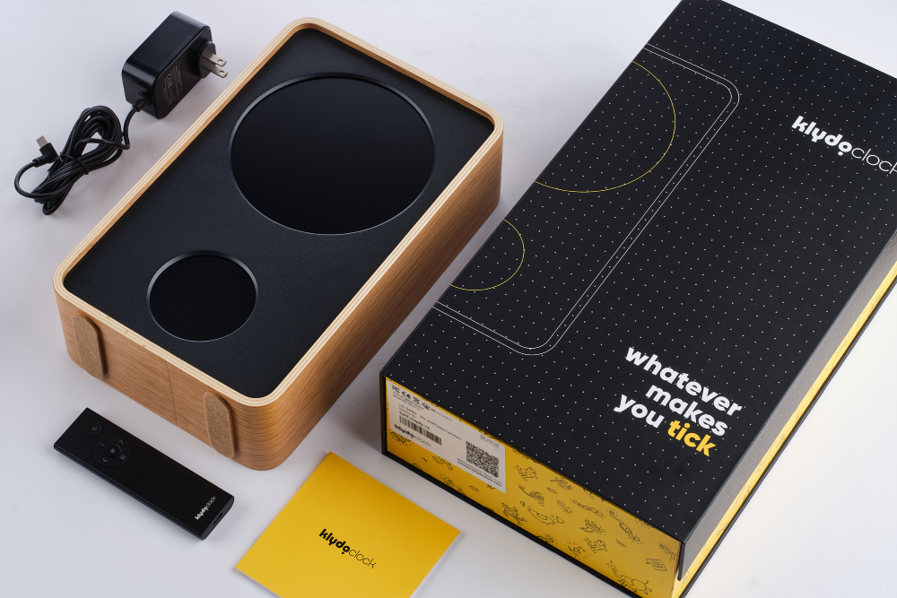 The signature knob, an homage to vintage clock controls, not only sets the time but, with a simple twist, sets the Klydo animation in motion, creating a playful back-and-forth dance that adds charm to every moment. A sleek, durable metal remote, crafted exclusively for the Klydo Clock, allows effortless adjustment of settings and browsing through the “endless feed of Klydos.” Even the packaging is part of the experience, thoughtfully crafted for gifting and designed to feel like a true luxury from the moment it’s opened.