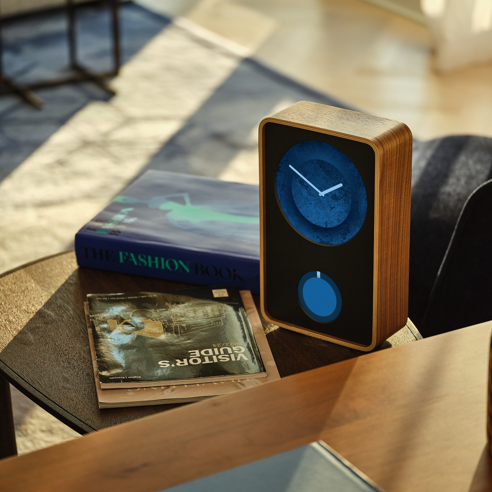 Designed with the classic mantel clock form in mind, the Klydo Clock features a beautifully crafted wooden frame and an elegant clock face that directly draws inspiration from vintage timepieces. Its timeless aesthetic brings warmth and character to any shelf, mantel, or desk, making it a striking design object in its own right before you even power it on.