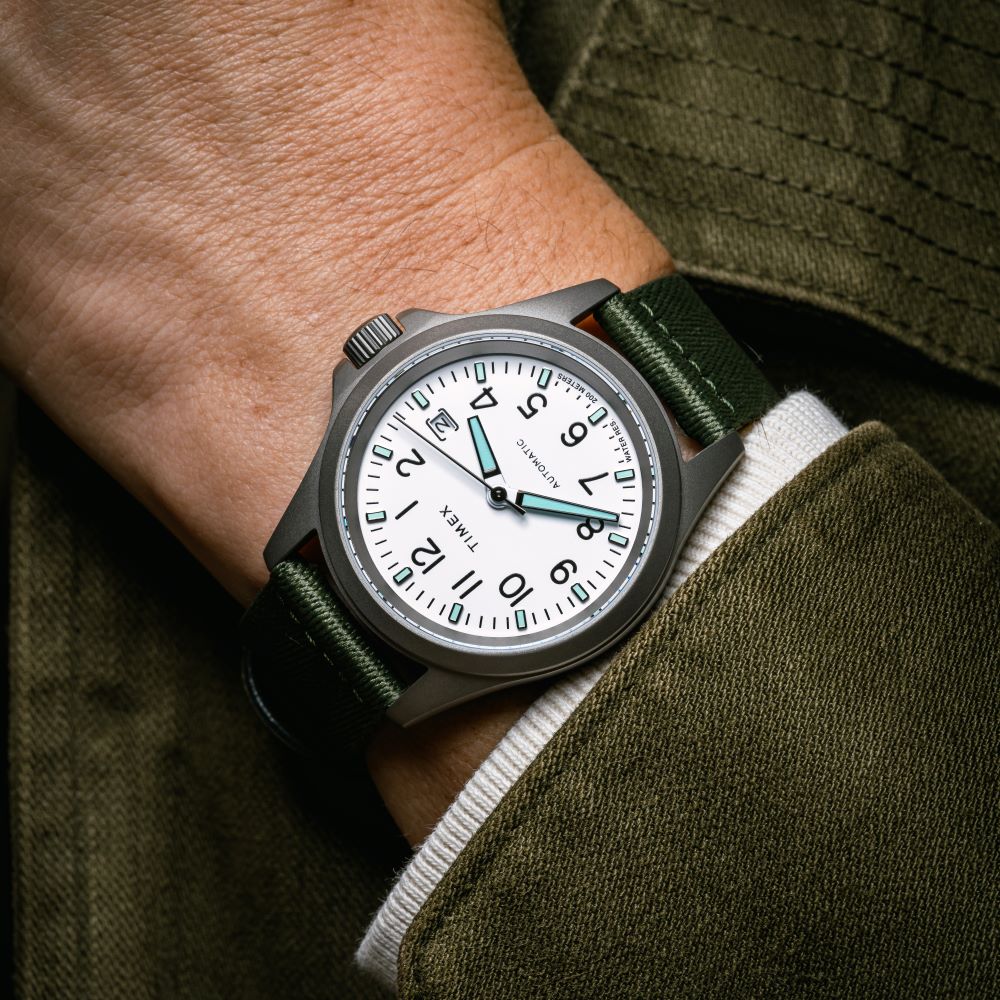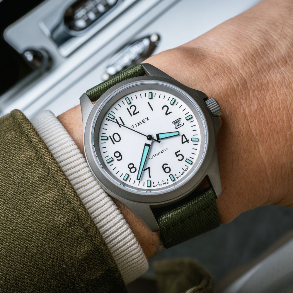 The matte white dial of this classy and pleasingly affordable (retailing at $375) watch has bright lume-coated indices that are directly inspired by the breathtaking Northern Lights – something that makes this timepiece excellent for use in low-light conditions. This Timex x Huckberry Automatic Titanium Watch is great looking and it is the ideal companion for any outdoor adventures you’ve got planned for 2024 and beyond.