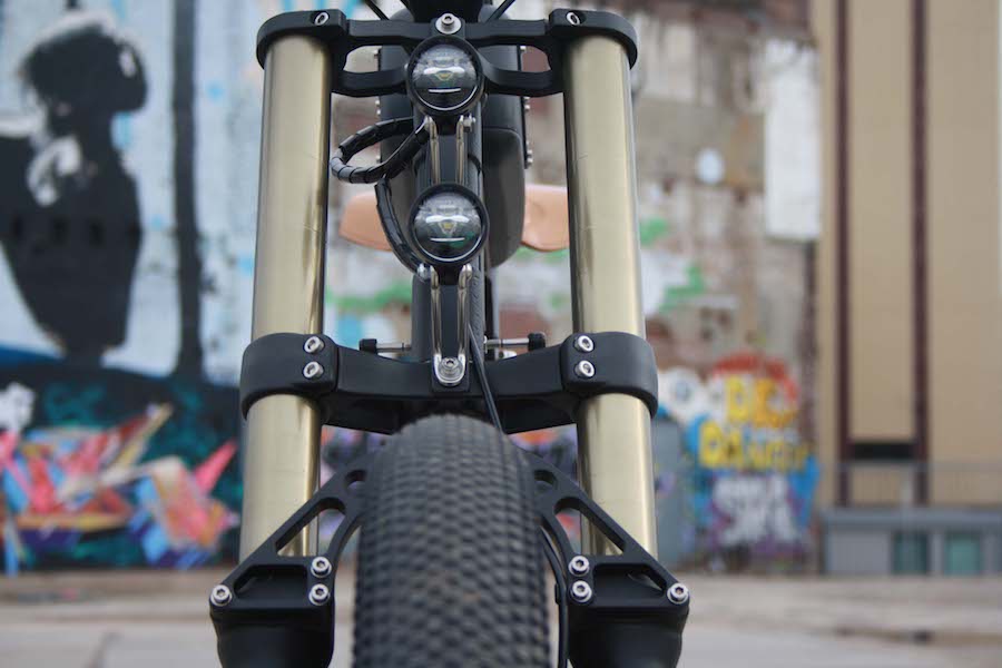 The Timmermans Scrambler E-bike V2.0 boasts a whole host of eye-catching features that go a long way to help set it apart in the extremely competitive world of electric bikes. This includes the likes of Schwalbe 70mm tires, Gates carbondrive, TRP discbrakes, 3 speed hub, Busch & Müller Healight and a Supernova rearlight that really catches the eye and ensures that you always remain visible when riding day or night.