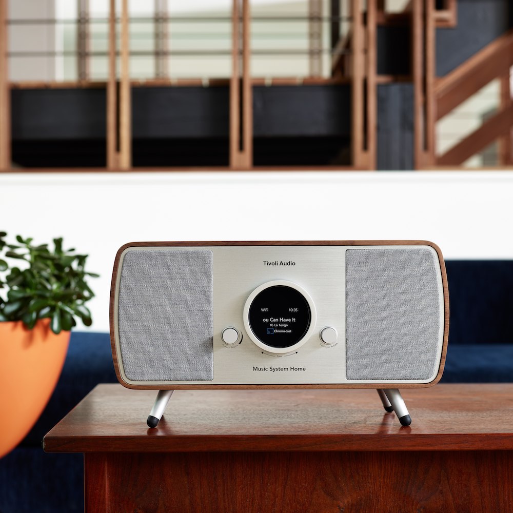 With an aux input that allows you to play music from your wired audio devices and optical input and wifi options that can support audio from video, the Tivoli Audio Music System Home Generation 2 is one mighty versatile device. It has a single dial that allows you to play, pause, skip tracks or change stations while a simple knob lets you select a source and adjust the volume with ease. The full-featured remote control handles more advanced functions and you can use your phone as the remote control when using the streaming app-based services via wifi.