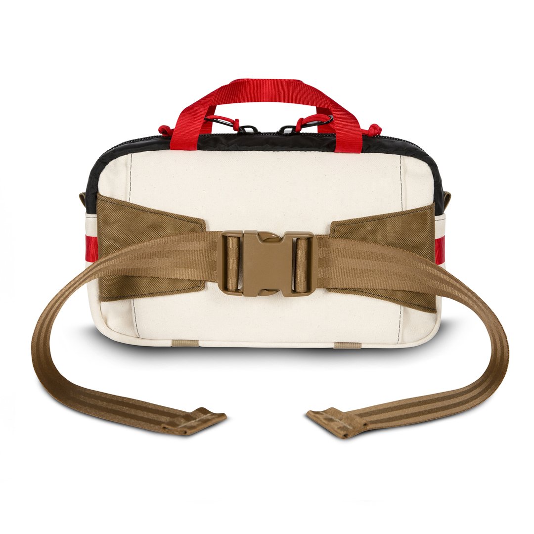 The Topo Designs x New Balance Quick Pack ($89) pairs a signature Topo Designs silhouette with classic New Balance suede for extra robustness and day to day performance. The spacious, padded main compartment is large enough for carrying essentials, while bottom compression straps keep the Quick Pack from getting bulky. Heavy-duty seatbelt straps can be worn crossbody or around your waist that gives this accessory a mighty versatile performance. It has an internal stash pocket, bike light attachment loops, oversized YKK zippers with paracord zipper pulls and an adjustable removable shoulder strap. ($89)
