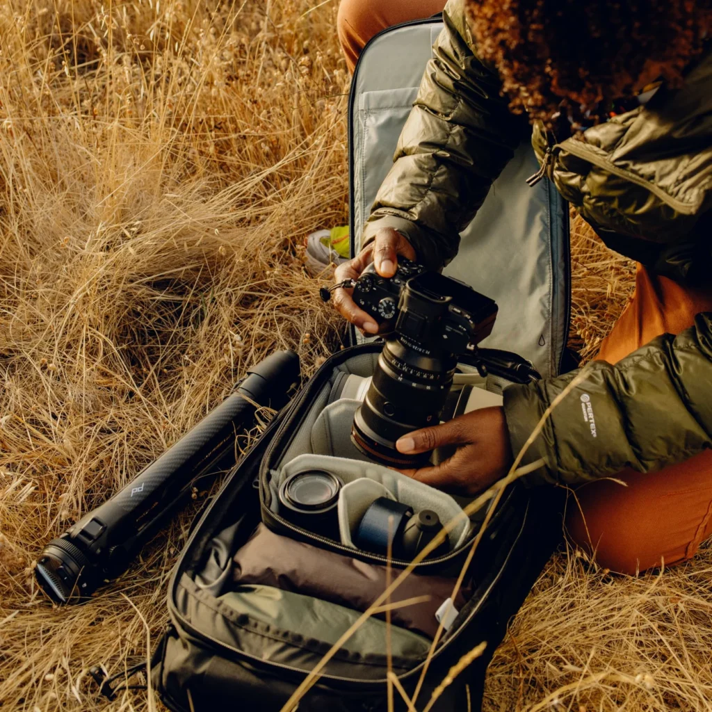 Clever internal mounting loops securely anchor your tech in place, while a massive rear access panel guarantees total visibility and instant, unhindered access to your lenses and camera bodies without having to dig through your clothes.