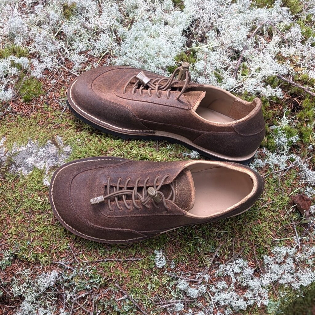 Two distinct versions of the Turriff Trail Shoes, both priced at $380, are available: the C-01 and the C-02 Anatomical Outdoor Trail Shoes. Both are hand-crafted on a zero heel drop anatomical comfort fit last, ensuring maximum toe room and optimal foot function. They feature premium all-leather uppers sourced from renowned English tanners Charles F. Stead, offering breathability, durability, and natural weather resistance. Their unique Blake rapid and forefoot Stitchdown construction makes them easily recraftable and resolable. Inside, you’ll find an extra-lightweight, vegetable-tanned leather insole, midsole, and heel stiffener, all designed with flexibility and natural movement in mind. A full premium kip leather lining and a gusseted tongue provide “old-fashioned” weather-proofing, while military-spec elastic shock cord lacing ensures a secure and adjustable fit.