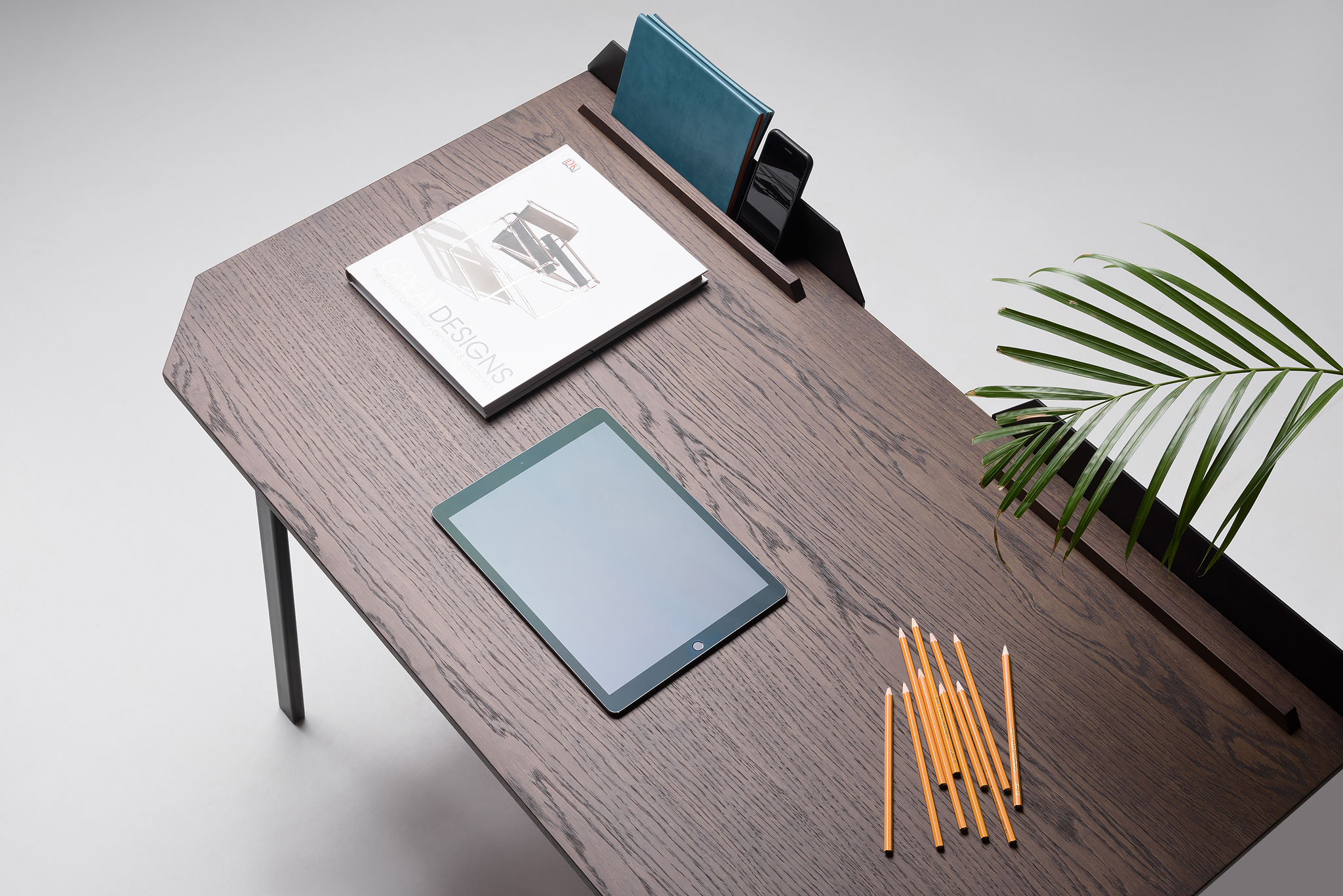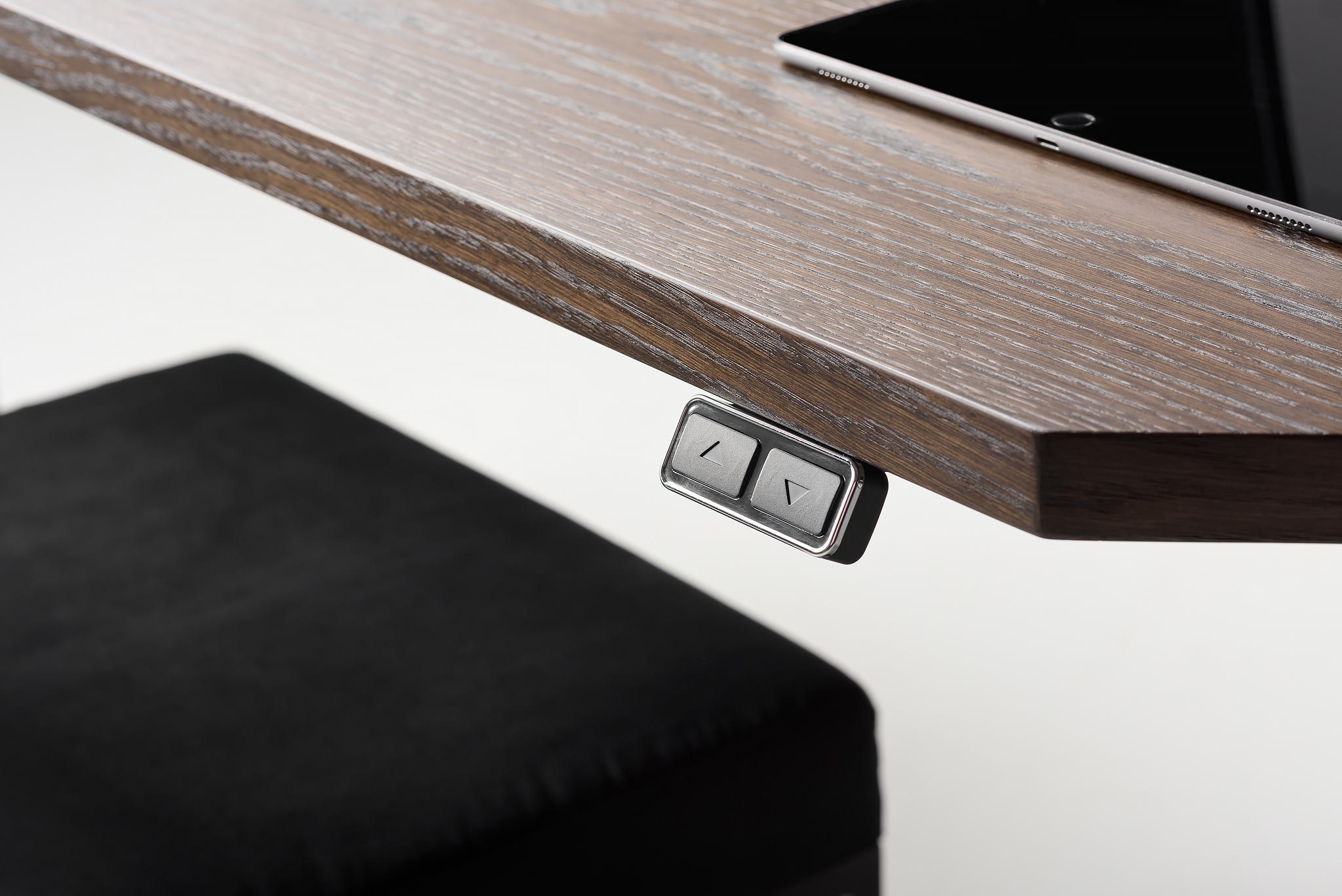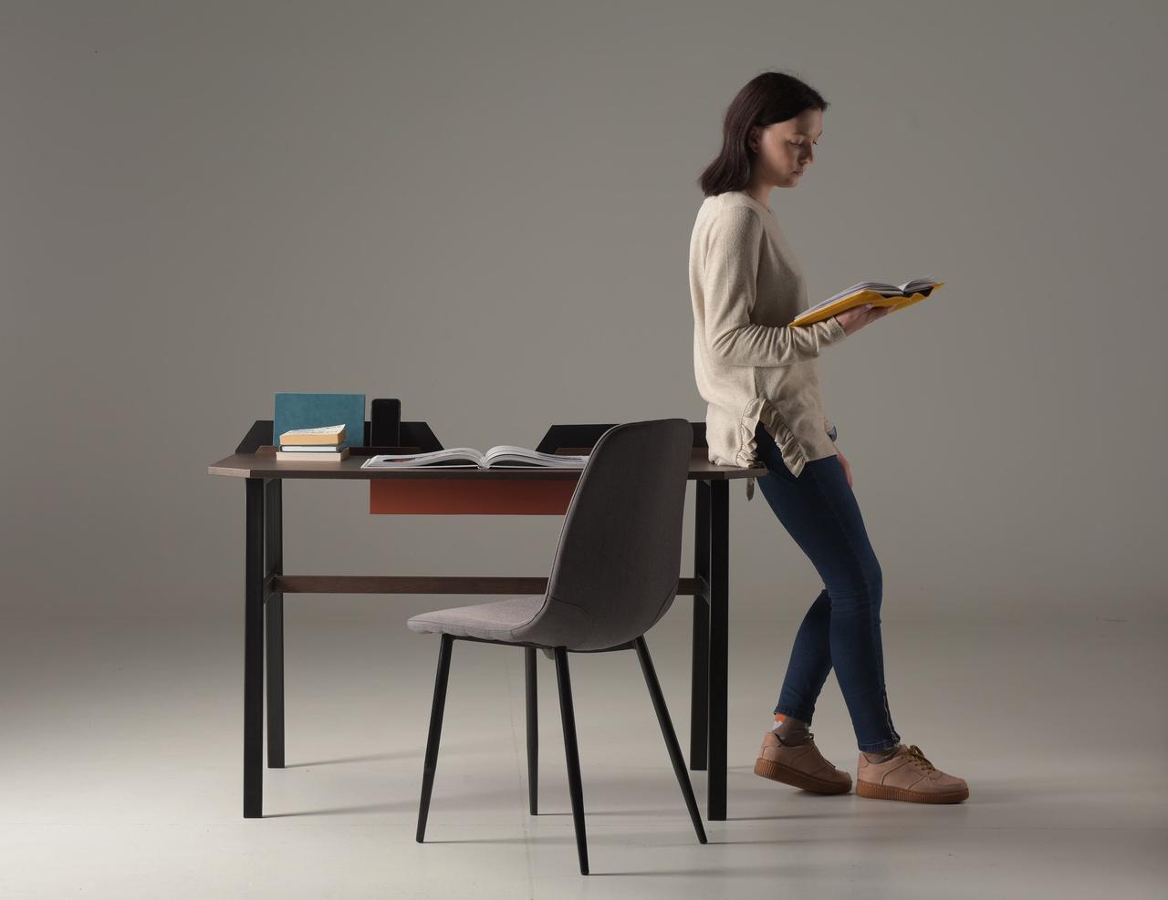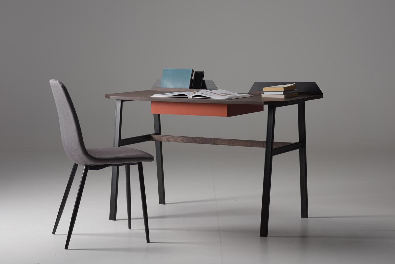 The contemporary design of the Pavel Vetrov designed UFO Lift Desk is coupled with an integrated vertical storage and display system which delivers an easy sight line to their sidekick mobile device screens such as smartphones, iPads and so forth. This fantastic piece of furniture design has a bold metal frame with a wood top design and a two-button lift motor which lets users switch between sitting and standing. A versatile metal stands is situated at the back of the desk surface and is designed to hold your EDC such as phones, keys, tablets and wallets.