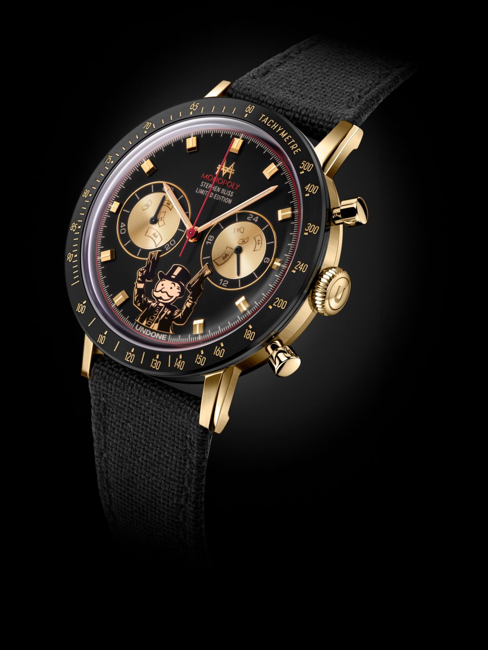 Available for the bargain price of $480, these limited edition UNDONE x Monopoly Collection are going to positively fly off the shelves and both “The Godfather” and “The Benjamin” are delivered in a premium “Luxury Tax”tin case, which comes complete with a commemorative golden 1M Monopoly bill featuring Rich Uncle Pennybags and Penny Gladrags (the Bonnie to his Clyde) so this will be the sort of watch that turns heads before you even get it out of the case.