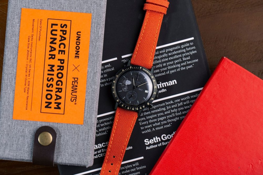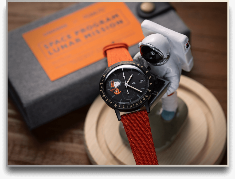 The bright orange versions of these UNDONE x Peanuts Lunar Mission Watches are striking enough to light up the dark side of the moon and will turn heads aplenty. You can choose from over 21 different dial designs with your favourite character in the spotlight. The entire Peanuts gang is uniformed up in ACES, or Advanced Crew Escape Suits, worn by NASA space shuttle crews since 2014 during ascent and entry and adds a playful element to the dial design.