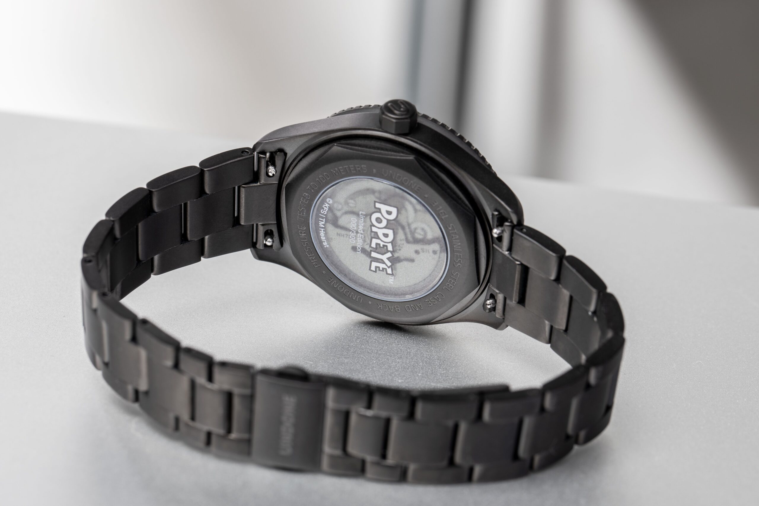 With only 300 available, this will sell out fast and some of the finishing touches include Popeye’s name signed off on the serialised glass caseback and the j jetblack DLC (Diamond-like-carbon) coating, equipped with a 316L flat 3-link “Oyster” style stainless steel bracelet.