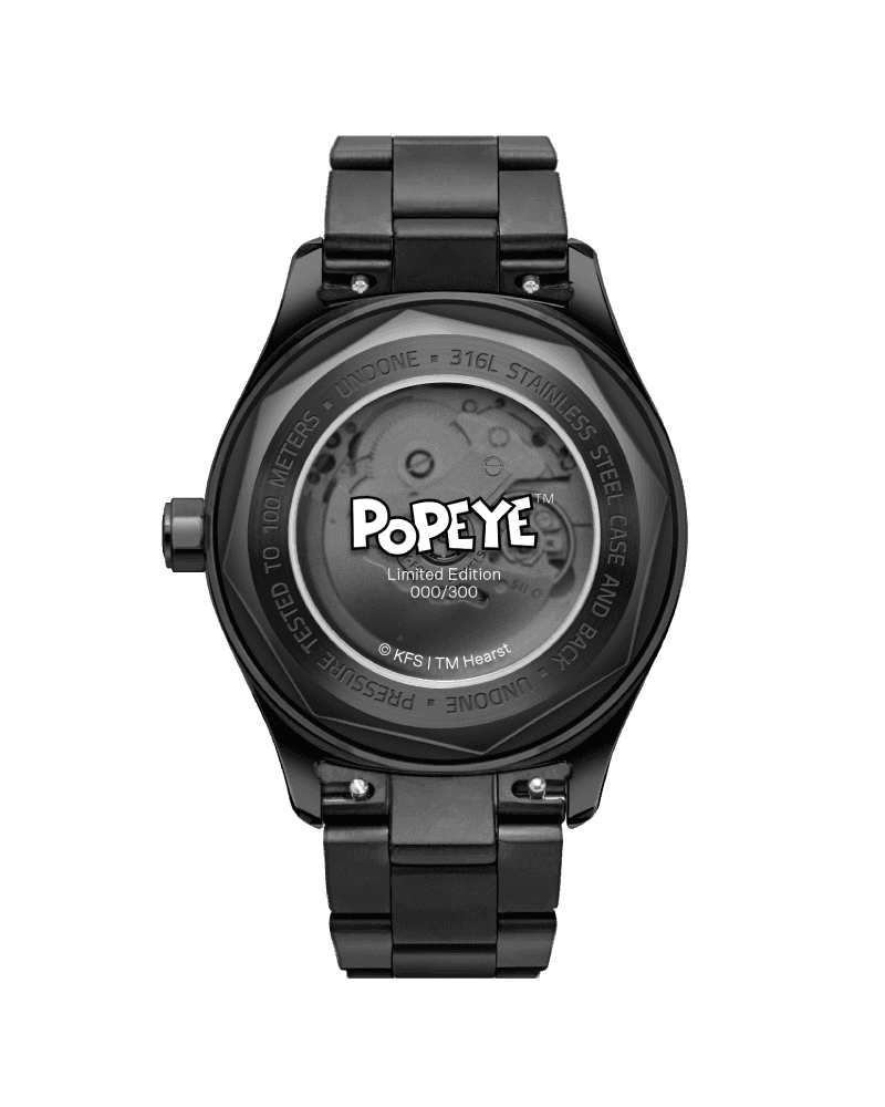 Brutus’ name is signed off on the serialised glass caseback as a finishing touch and the UNDONE Brutus MONO is housed within a DLC (Diamond-like-carbon) coated 316L stainless steel case. This watch also features a scratch resistant sapphire crystal, with inner anti-reflective treatment to increase visibility in sunlight. If you’re a fan of the Popeye franchise, these watches are definitely going to be ticking all the right boxes and you’ll have to make sure you move fast to secure one for your wrist this winter.