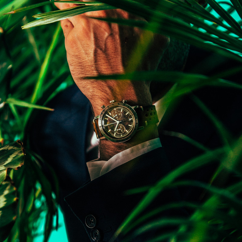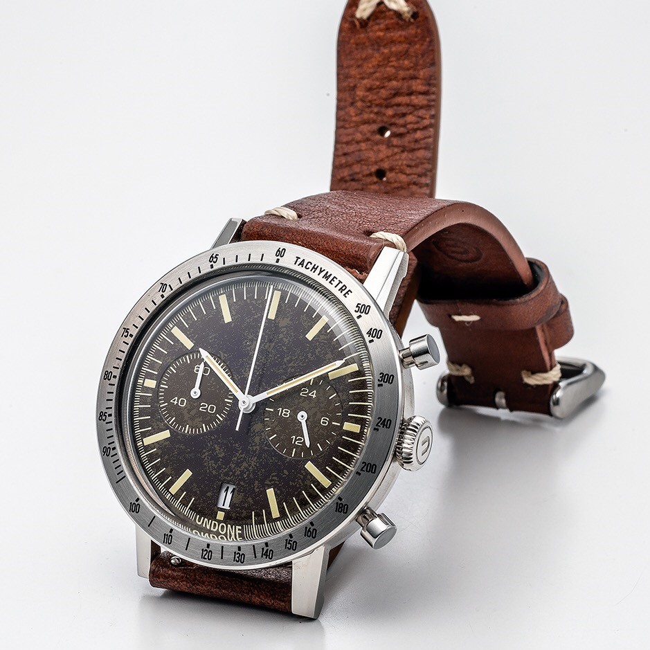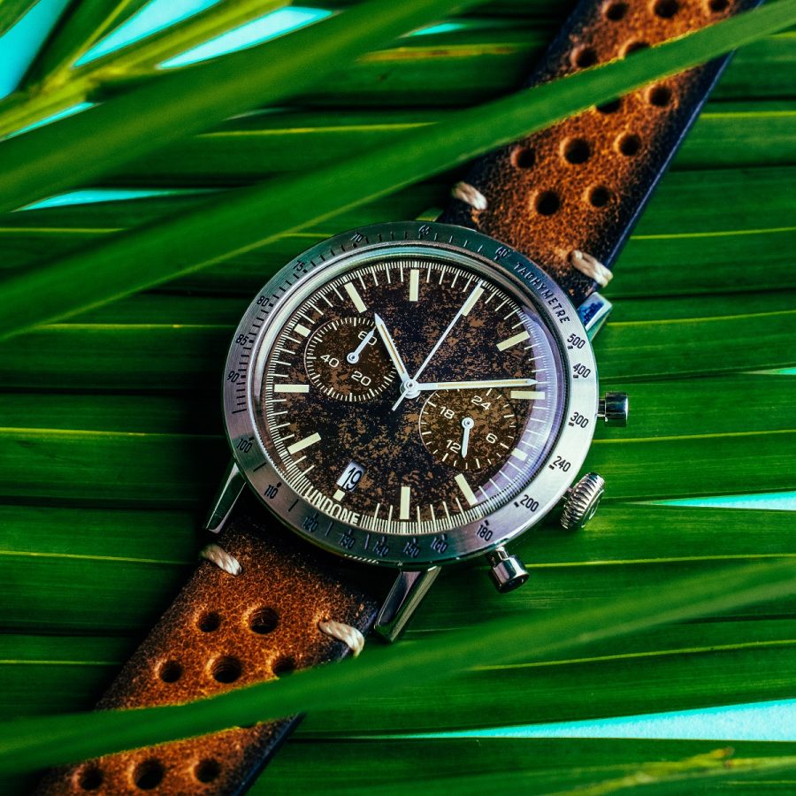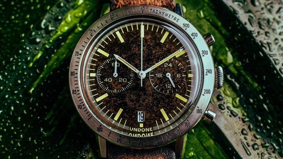 This new Urban Tropical Chronograph collection from UNDONE introduces three patinated dial styles, a new layout, and an array of top quality leather straps from which to choose. After spending many years studying, collecting, and understanding tropical dial watches, UNDONE made it their goal to create their own faux patina distribution process, which delivers a whole new aesthetic to their ever-growing Urban Chronograph series of watches. The result is a striking timepiece that is ideally suited to those who love the imperfect charm and aesthetic appeal of these vintage, sun-kissed dials.