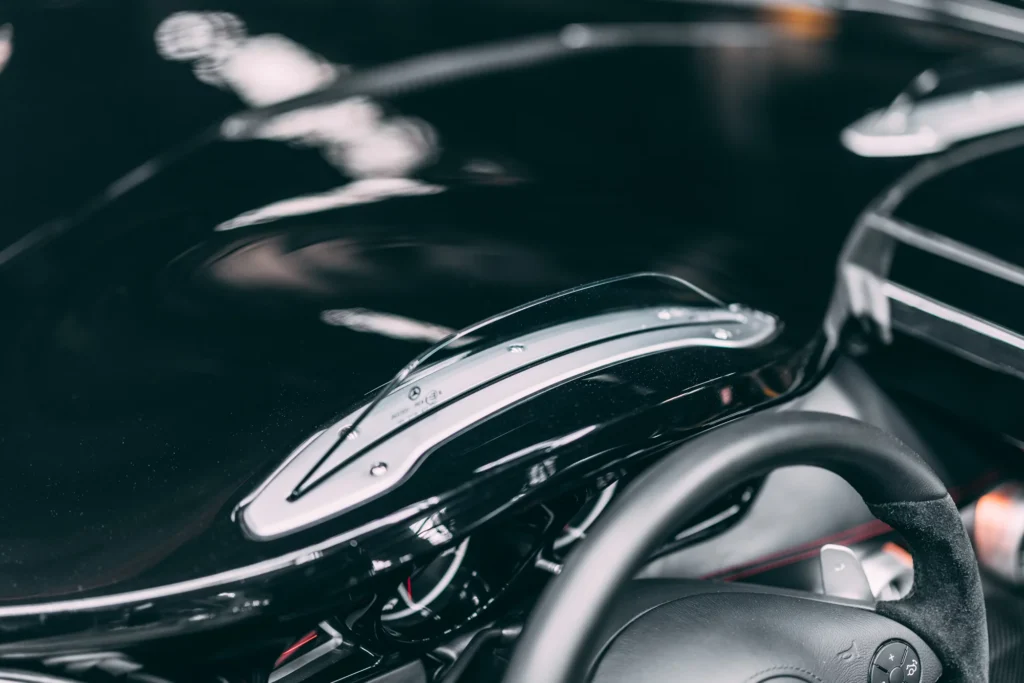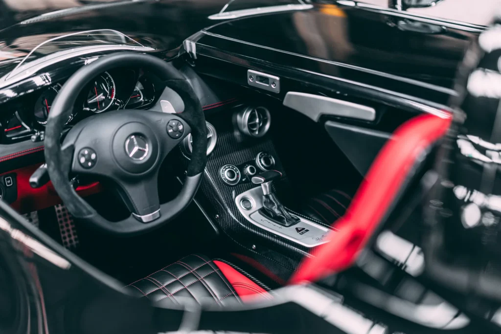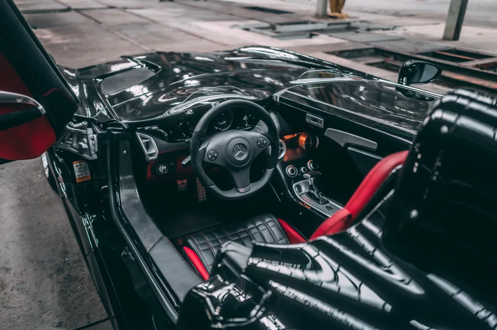This specific car is a European delivery model, finished in the extremely rare colour combination of Black exterior over a stunning 300SLR style red and black leather interior – believed to be one of only three ever produced in this configuration. With an astonishingly low recorded mileage of just 161km from new, it genuinely presents as a brand new example, even still riding on its original tires from 2008.