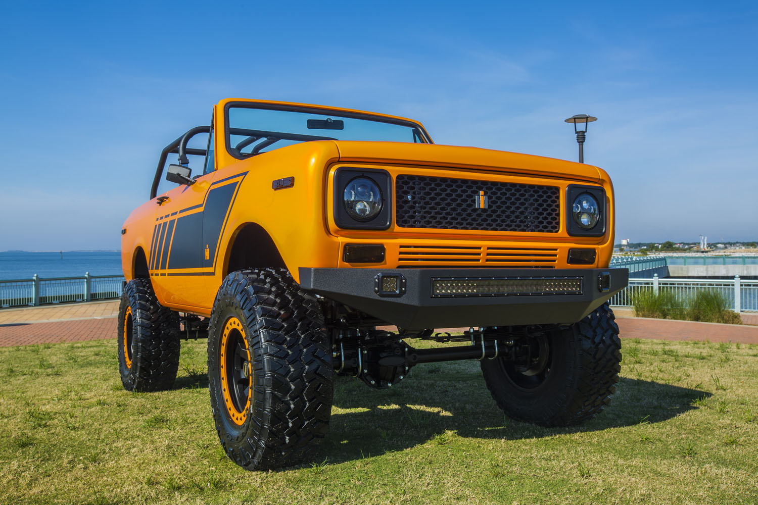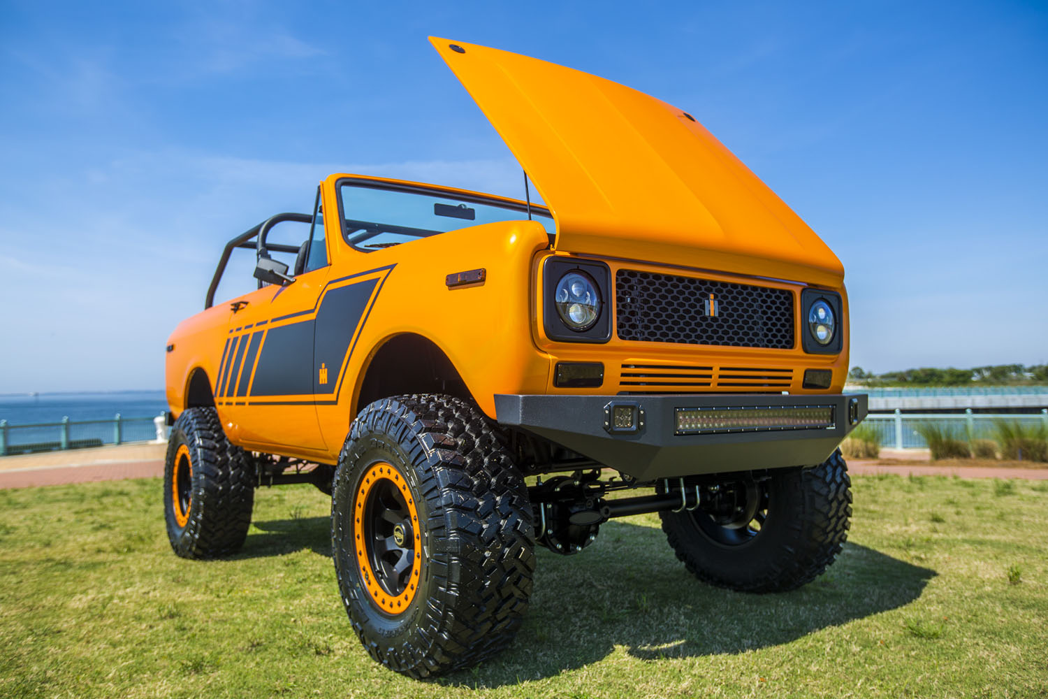 We’re pretty sure you won’t have seen an International Scout anything like this out there before and for those who really like to make their mark and turn heads with their choice of ride, you’ll be in your element with the handiwork of Velocity Restorations. This superb steed takes a Classic International Scout to a whole new level of restoration awesomeness and then some. This includes custom paint, graphics dashboard and it doesn’t end there – there are a mighty impressive array of features to be discovered within and under the hood.