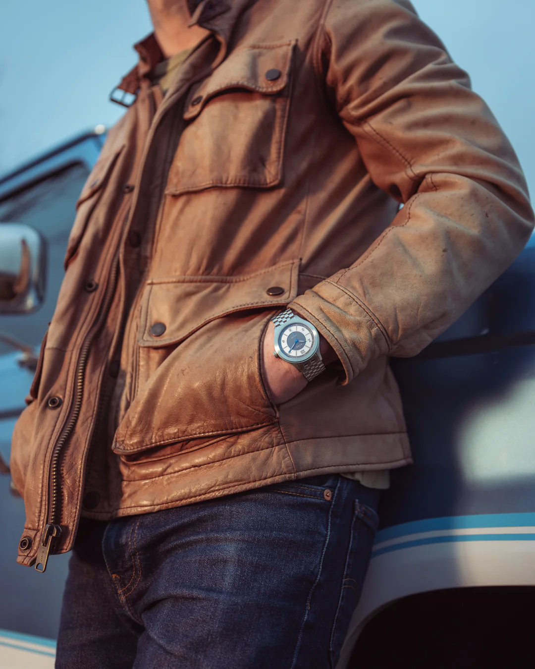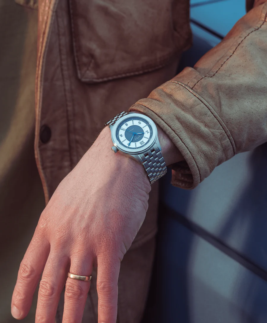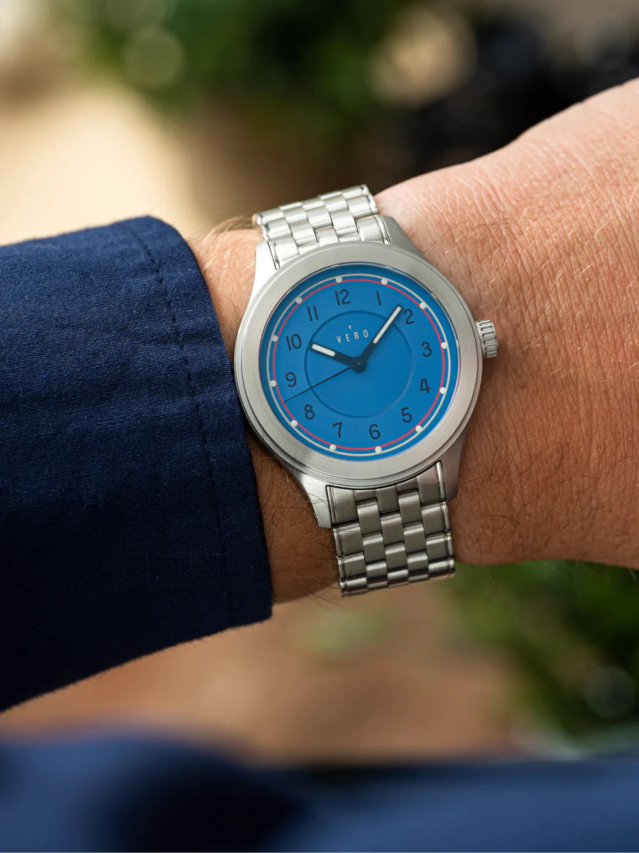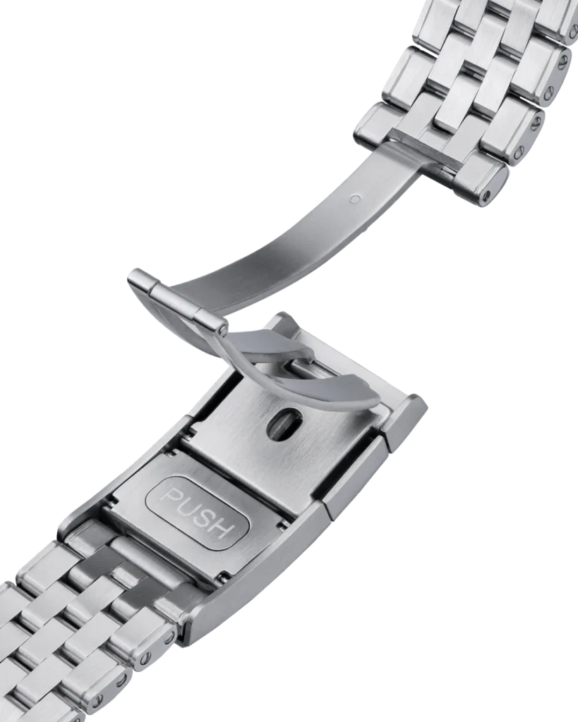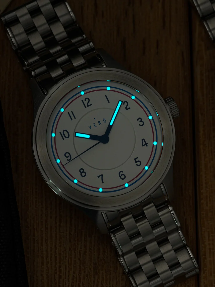 Vero understands that comfort is just as important as performance. The Meridian comes with both a leather strap and an articulated bracelet, offering versatility and allowing you to customize the watch to your personal style. The articulated bracelet features a NodeX push-button clasp with built-in micro-adjustments, a collaboration with Nodus. This innovative clasp allows for easy and precise adjustments to the bracelet, ensuring a comfortable fit year-round, regardless of temperature or wrist size.