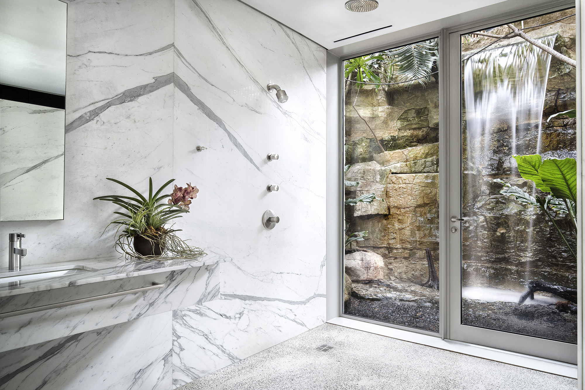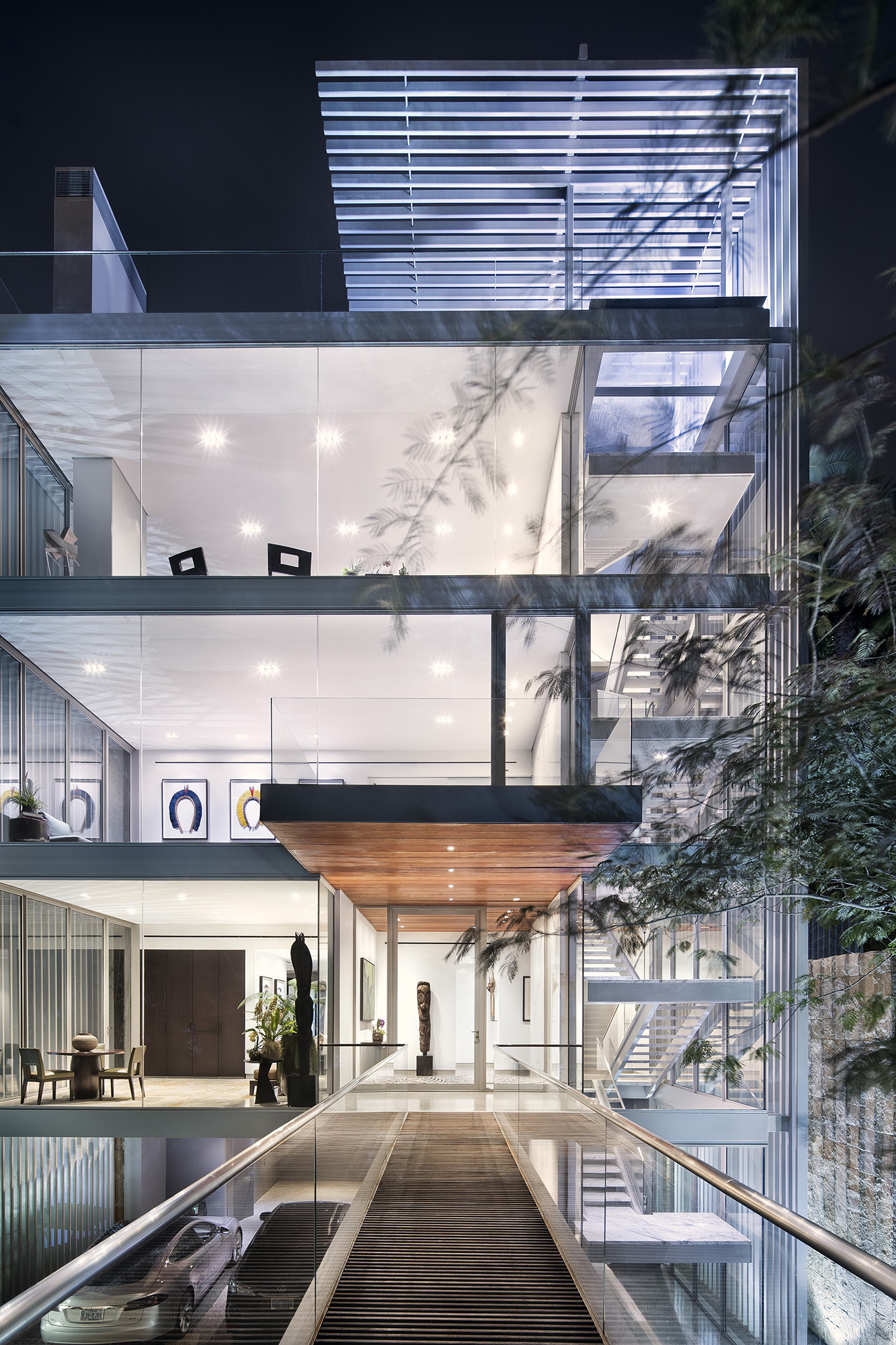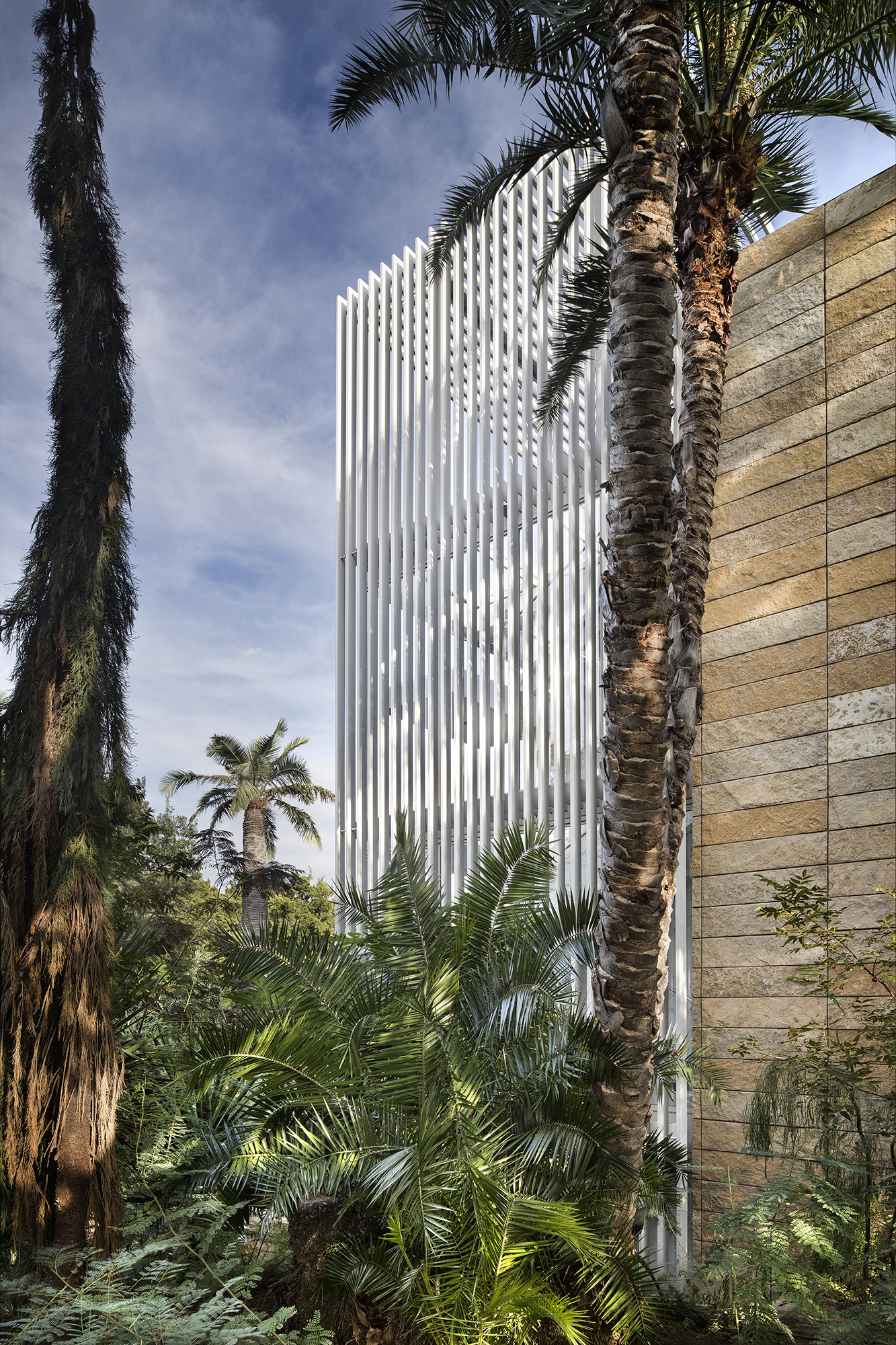 The Miró Rivera designed Vertical House utilises clean lines, sheer glass walls alongside sculptural sun shades to deliver a sharply-detailed structure which has a highly engaging and innovative counterpoint to the tropical ambiance of its forest-like location. Offering two 60-foot-tall exterior screen walls which burst skyward on each side of the home and deliver the property’s main structural support and ensure that there is always plenty of shade and sense of privacy in all of the interior spaces of the design.