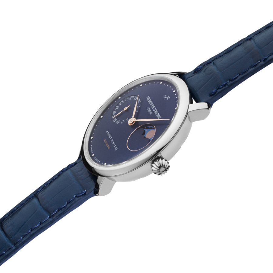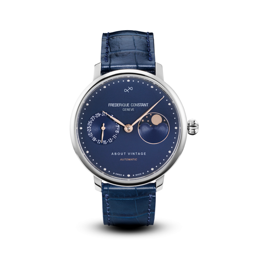 The About Vintage x Frederique Constant 1988 Moon Phase Watch is a stunning luxury timepiece and the collaboration between the two brands came about because Frederique Constant are one of Danish watchmakers favourite Swiss watch brands and they are known for their classic designs and innovative in-house automatic movements. This capacity to be able to design a watch with them is a dream come true from About Vintage and, it’s fair to say, the two brands are a match made in heaven if this breathtaking timepiece is anything to go by.