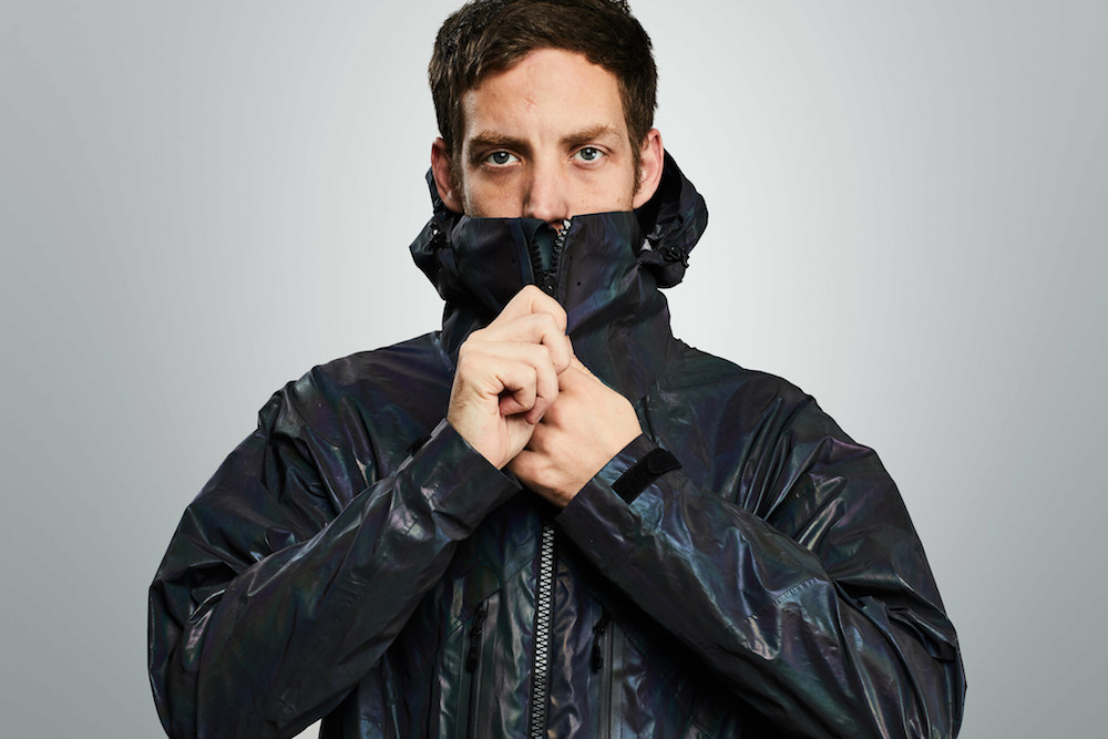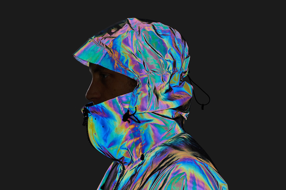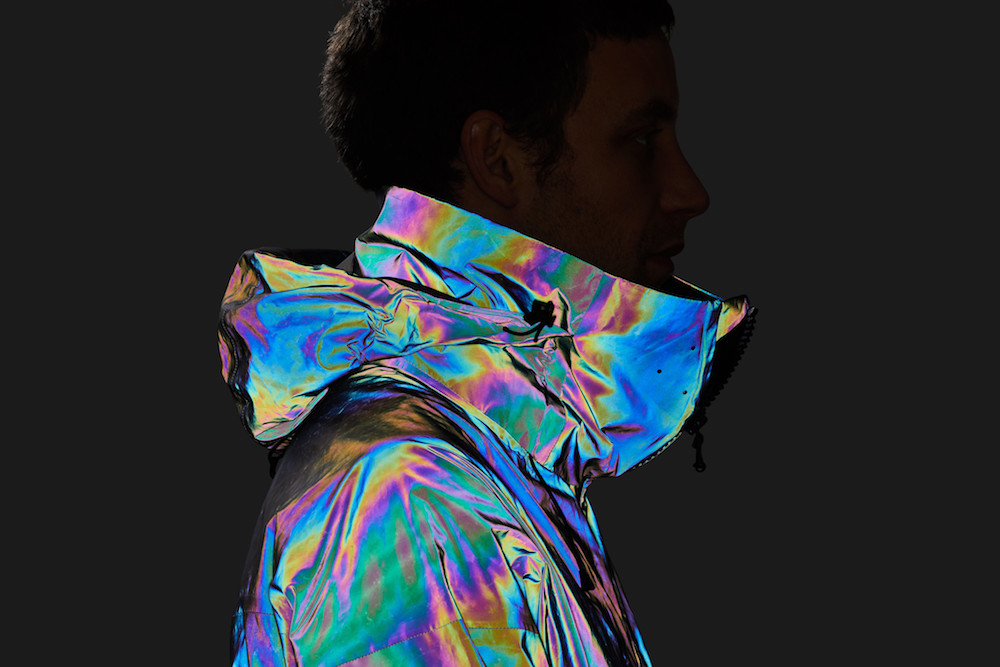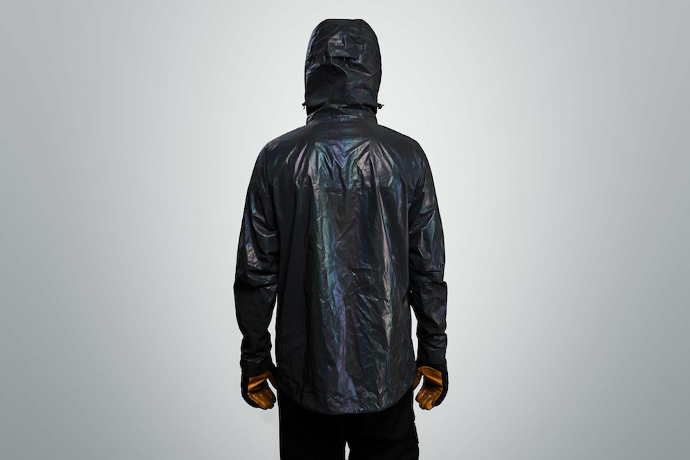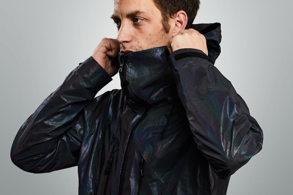 The beauty of the Vollebak Black Squid Jacket lies in the fact it changes so quickly and effectively its look. In sunlight it will look like liquid metal and when the flash is on, it looks like it’s from a different planet entirely. As the jacket reflects light straight back at the flash, it also directly strikes the lens – which makes the jacket look like it too is emitting light. At the same time the surface of the jacket scatters the remainder of the light to give it its mind-bending colour.