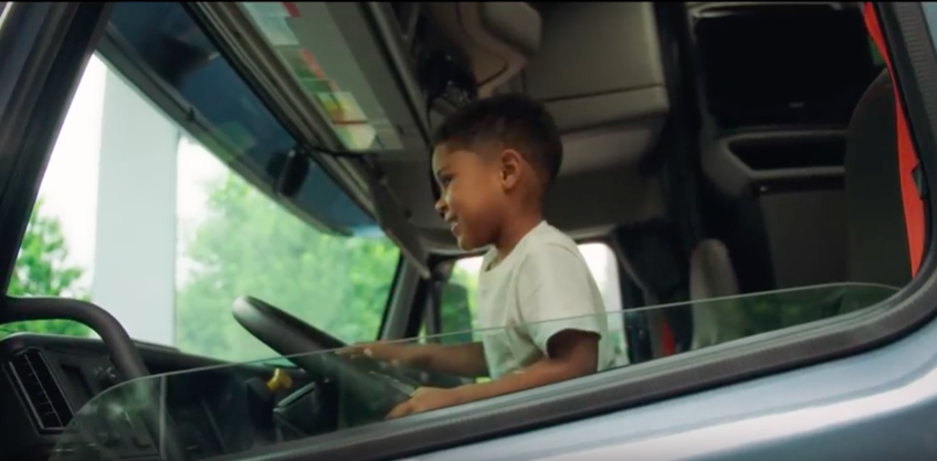 This brilliant video illustrates the unbridled joy that Joel Jovine had in receiving delivery of this huge truck which was a life size version of some of is own favourite toys. In the engaging video celebrating Volvo’s new range, you see the extremely large toy truck box, measuring 80’x14’x18’, waiting on the street in a residential area, and then the fantastic reaction when Joel Jovine gets the chance to unbox the new Volvo VNL model. He also gets to clamber into the truck’s cab for a firsthand look, and then takes a ride with a professional driver.