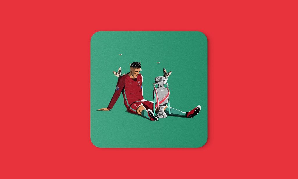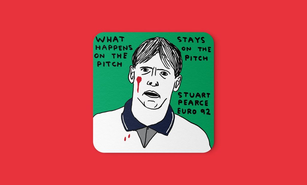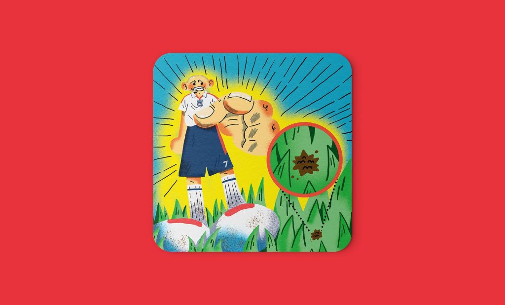 These stylistic Weird Euros Beer Mats boast the considerable talents of the likes of established artists and designers such as David Shrigley, Chris Simpson and Pentagram’s Astrid Stavro and these big-hitters are joined by rising talents such as Robyn Nicol, David Oku, Raj Dhunna and Isobel Mehta. Each artist has created a memorable moment from the Euros and some are definitely more bonkers than others.