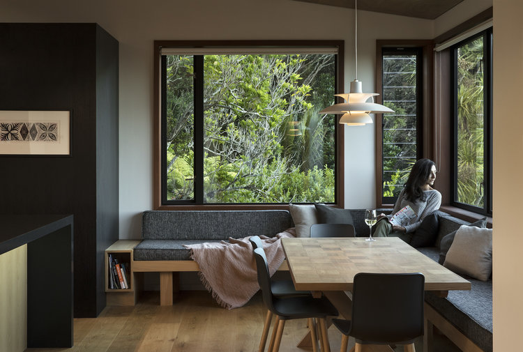 Everywhere you look with the Strachan Group Architects designed Whare Koa House you’ll see some striking design features and the attention to detail really is second to none. Boasting a T-shaped floor plan, this interesting and well conceived design immediately draws you in and accommodates two east facing bedrooms alongside the art studio and the main living spaces with the kitchen situated above – all geared towards making the most of the exquisite view.