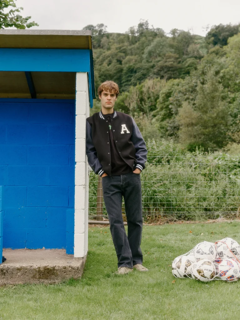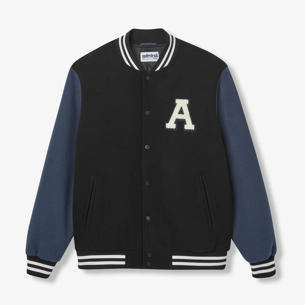 The Admiral Lincoln Varsity Jacket in black is our take on a traditional varsity jacket which is influenced by an item found in the Admiral sportswear archive from the 1960s.