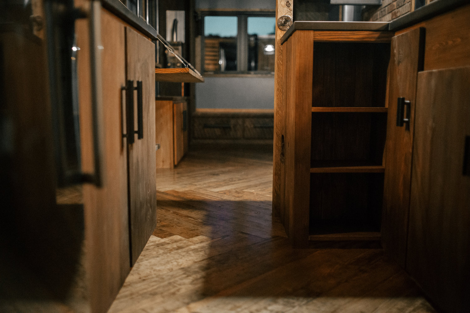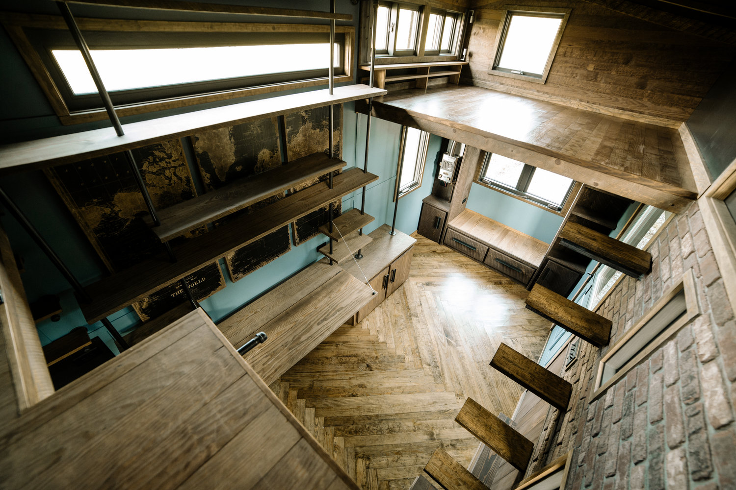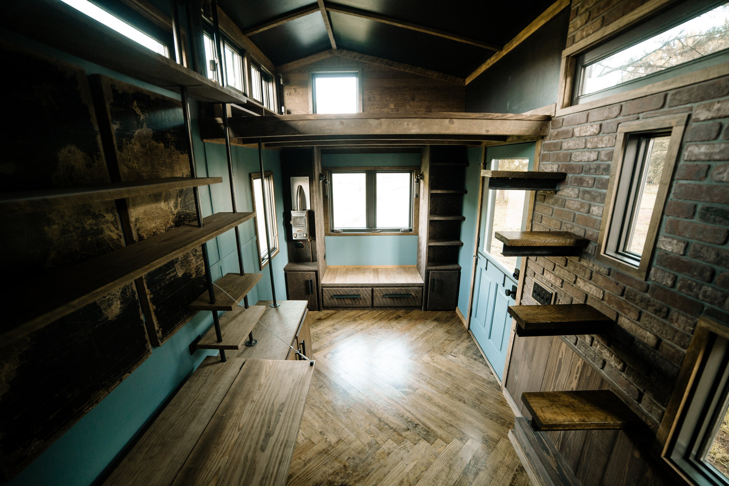 Impressive on every level, the exterior of The Rook boasts painted vertical siding alongside eye-catching exposed stainless screws which deliver a striking industrial aesthetic that we’re loving. It’s the interior, however, that really wows and, for those opting for the “full works” $100k offering, you can get a stunning herringbone floor, exposed brick veneer, floating rebar stairs, and a handful of other rugged, loft-style pieces that look sensational..