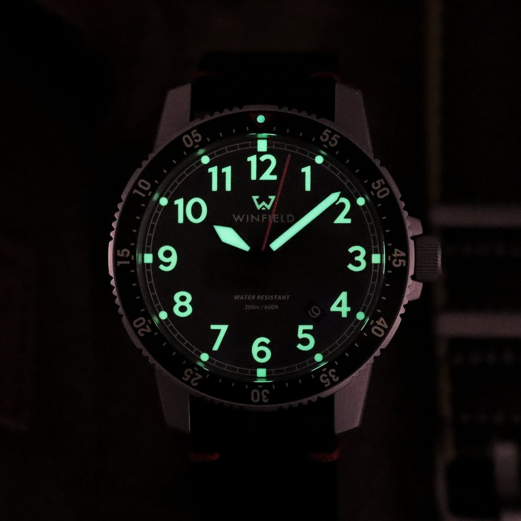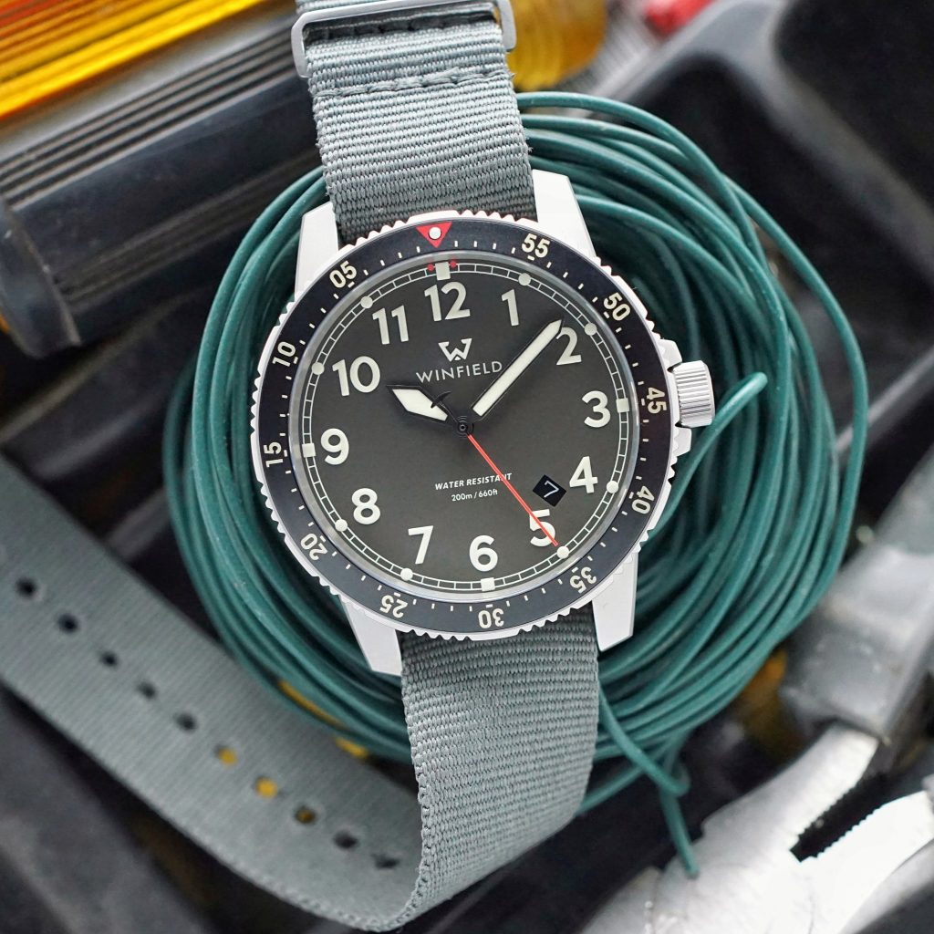 It is powered by a Ronda 715Li movement, which is a solid Swiss quartz movement that boasts a thoroughly impressive 10 year battery life. As a debut outing for the Winfield brand, this is an ideal choice of movement because it is so reliable and hard working that doesn’t let you down whatever adventures you take it on and will keep accurate time day in, day out.
